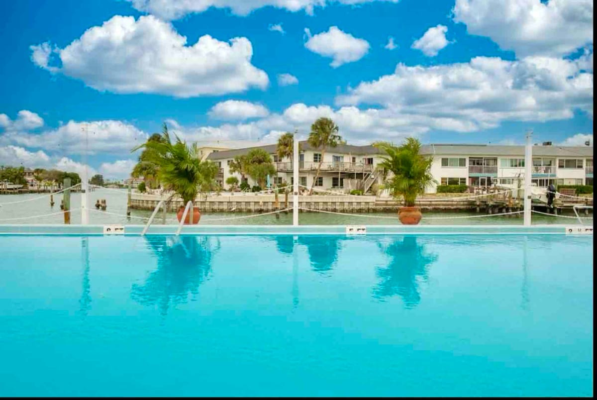 Wake up to stunning waterfront views! Unwind in this bright studio overlooking Boca Ciega Bay, sip coffee on your private balcony while watching dolphins. Highlights: • Direct waterfront views from balcony • Heated pool, spa & fitness center overlooking bay • Minutes to Madeira Beach, St. Pete, & War Veterans’ Memorial Park • Cozy king bed • Close to boat rentals, trails, and waterfront dining Perfect for romantic getaway or peaceful solo escape!