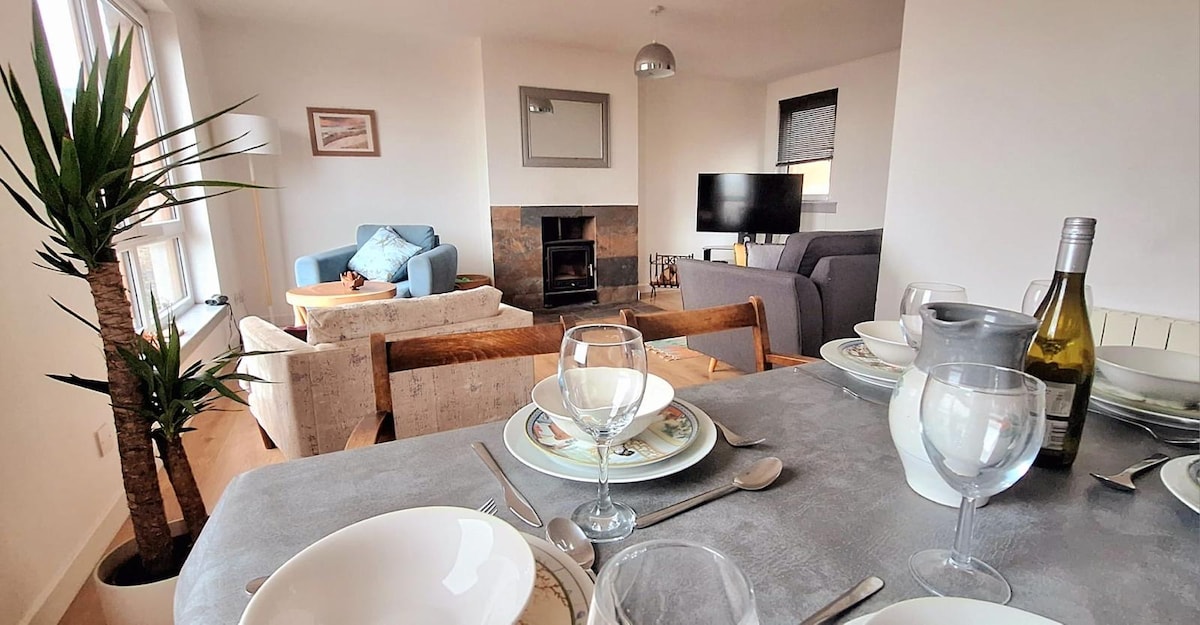 O casă spațioasă de dormit 6 (1 dublu, 2 gemeni) situată într-o grădină mare închisă, cu vedere spectaculoasă la mare. În satul de coastă St Cyrus, la 5 minute de mers pe jos de pub, magazin sau pe poteca stâncoasă până la nisipurile aurii și dunele înflorite din Rezervația Naturală Națională Sf. Cyrus. O mulțime de spațiu pentru a-ți face propria locuință; să faci un ospăț sau să te relaxezi lângă aragaz în bucătăria mare, să observi delfini din seră sau să privești cum luna răsare din mare după un grătar. Grădină închisă, ideală pentru familii și câini.