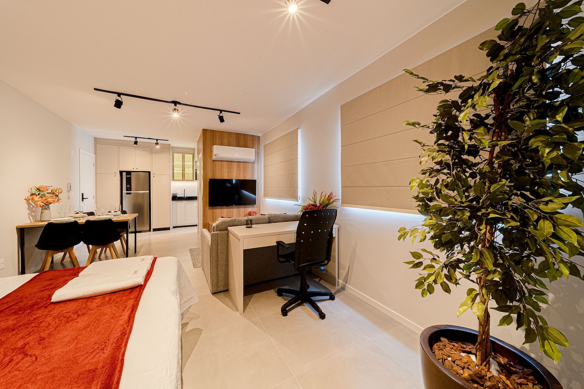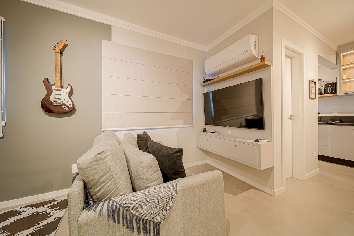 Modern apartment in the Anita Garibaldi neighborhood, one of the most valuable areas in Joinville. Perfect for work or leisure, it features dimmable lighting, LED mirror, fast Wi-Fi, fully equipped kitchen, air conditioning, and great comfort. Strategic location, close to downtown, hospitals, markets, and main roads. Comfort and convenience in every detail.
