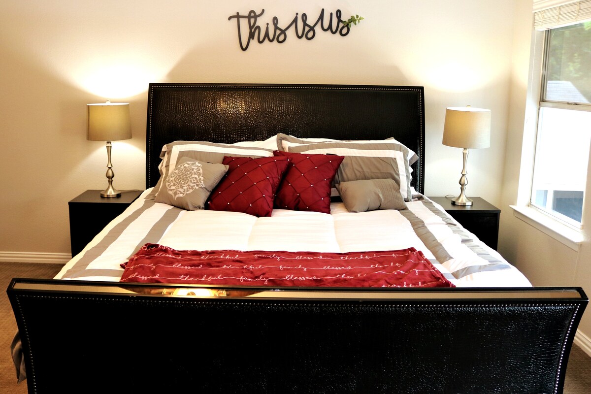 Newly renovated home in a quiet cul-de-sac one minute from the 183 highway and nineteen minutes from downtown. Both bedrooms are spacious with their own bathrooms and walk in closets. The master bedroom has a California King bed and the second bedroom has a Queen. Both bedrooms are upstairs. We installed a guard rail and anti slip grips on the steps but if stairs are an issue for some guests we have a roll in bed stored in the garage as well as a large couch that can be used down stairs.