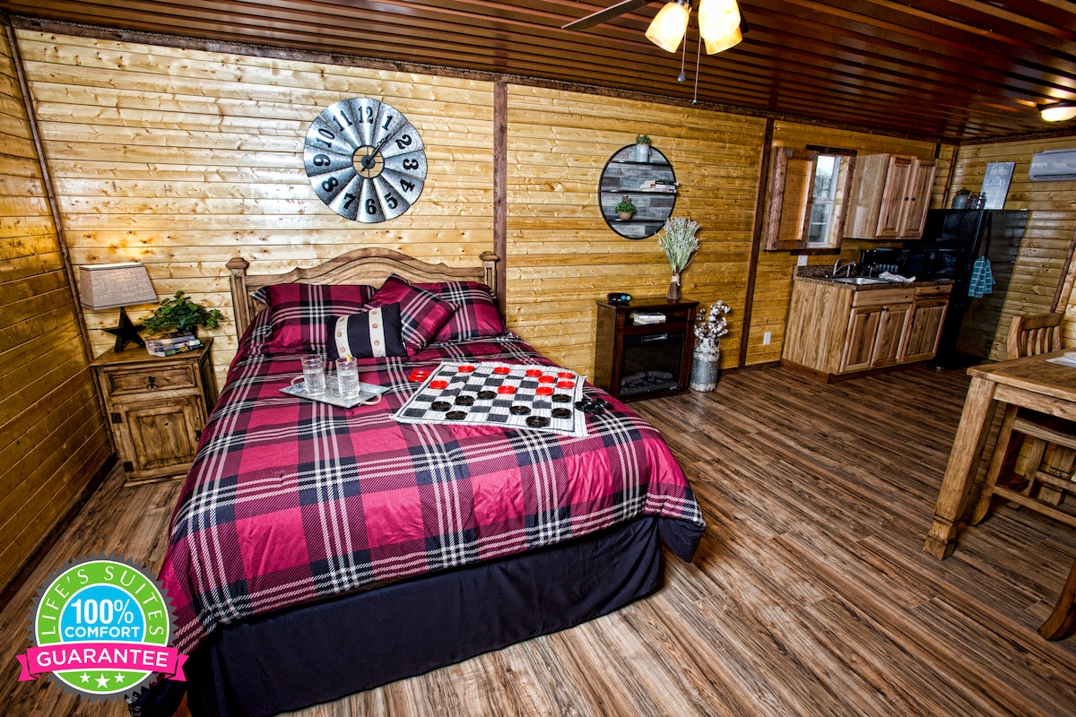 Relaxează-te și deconectează-te în acest refugiu pentru cupluri de la țară! Bucură-te de liniștea și intimitatea pe care le oferă acest superb hambar cu 1 dormitor. Dispunând de un șemineu și o cadă cu jet în living. Dușul are un cap de duș cu cascadă și o fereastră cu vedere la preerie. Bucătăria este complet echipată, trebuie doar să aduci mâncarea pentru a o repara! Iar dormitorul oferă un pat confortabil de dimensiuni regale. Bucură-te de apus de soare de pe terasă, apoi ghemuiește-te sub stele! Rezervă acum și adu-ți mierea în acest mic cuib de dragoste de vis!