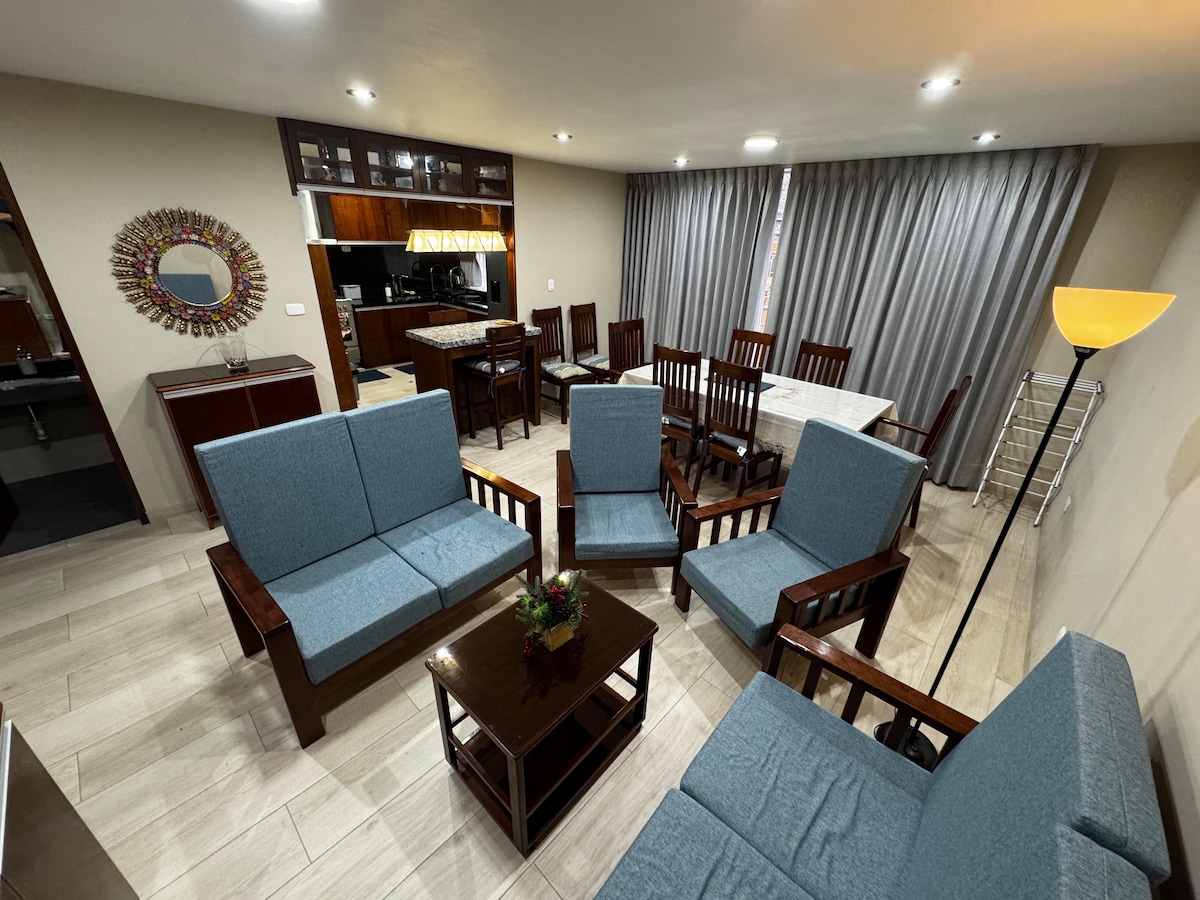 Apartament modern și confortabil Bine ai venit în casa ta departe de casă! Acest apartament luminos și elegant cu 2 dormitoare este ideal pentru cupluri, familii sau călătorii de afaceri care caută confort și stil. Situat la câțiva pași de cele mai bune restaurante, magazine și atracții turistice din oraș, te vei bucura de un sejur de neuitat. La 10-15 minute de Plaza de Armas și la 5 minute de mall-ul porongoche și lambramani cu mașina.
