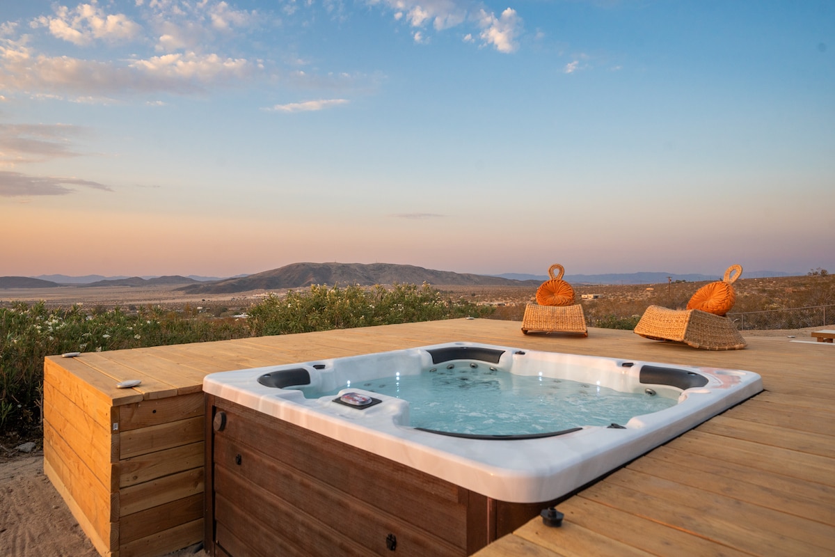 Un sanctuar privat în deșert, conceput pentru odihnă profundă, reconectare și dimineți lente sub cerul larg deschis din Joshua Tree. Scufundă-te în cada cu hidromasaj din cedru sub stele, fă o baie rece la răsărit și relaxează-te lângă foc în timp ce deșertul se liniștește în jurul tău. Proiectat cu atenție, cu decor personalizat, lenjerie de pat, ceramică artizanală, sunet organizat și Wi-Fi rapid. Liniștit, pașnic și conceput intenționat pentru o evadare rară și revigorantă în deșert. Reconectează-te cu natura, cu tine sau cu cineva pe care îl iubești