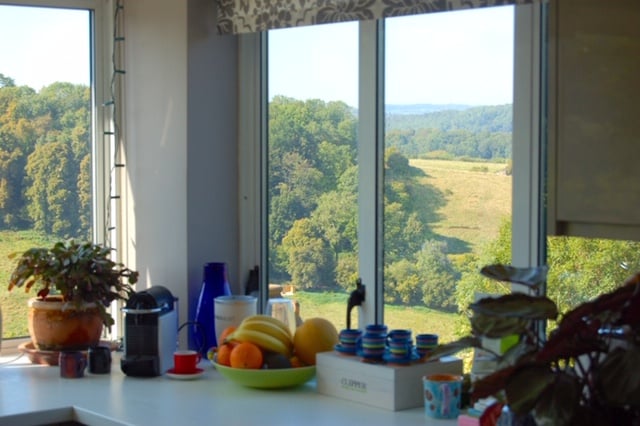This expertly refurbished 19th-century Coach House is full of character and all ready for your luxurious relaxing break. The open-plan living area has a exceptional view, and when you want a change there's a large smart TV and good-quality broadband for entertainment. The kitchen comes with induction hob and oven, dishwasher and washing machine, as well as all the pots, pans & utensils you need for cooking up delicious meals. The shower room/toilet is conveniently tucked away in a corner. Walk up the distinctive oak staircase to find the upstairs bedroom, with its impressive round window. It sleeps up to three people in a kingsize double bed and a separate single, and there's also room for a travel cot for an infant.The Coach House is ideal for a couple on a romantic escape, or for a family with young children looking for a safe space to relax and play. KEY FEATURES - One bedroom – upstairs, with kingsize double and single bed, space for travel cot. - One shower room/toilet – downstairs. - Sleeps up to three, and infant. - Private outside terrace area with view, shared use of 1.5 acre secure meadow & gardens. - Dogs welcome, two maximum, small additional charge. - Young children welcome (but you may need to bring a stairgate for safety). - Smart TV (Netflix, iPlayer, Freesat etc). - Good-quality broadband/Wi-Fi (free). - Induction hob, oven, microwave, fridge (freezer available if required), dishwasher. - Dining table for four, two leather sofas. - Washing machine (and use of dryer if required). - Underfloor heating (powered by eco-friendly air source heat pumps). - Wood burner, first basket of logs free. The Coach House is bookable by the week (start day Friday), and for weekend and mid-week short breaks.
