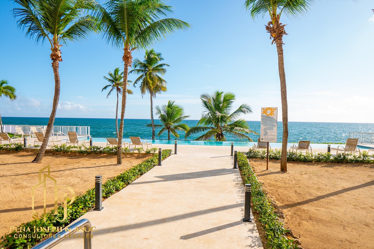 BEACHFRONT/PRIMERA LINEA DE PLAYA Apartment with truly best view in town. Part of Club Hemingway, the most exclusive resort on Juan Dolio beach, Dominican Republic. Our guests enjoy access to all amenities of this prestigious resort, including beach bars, 5 restaurants, multiple pools and chaise lounges along the private beach. Ideal for family fun or remote work, Hemingway provides a perfect blend of relaxation & recreation.