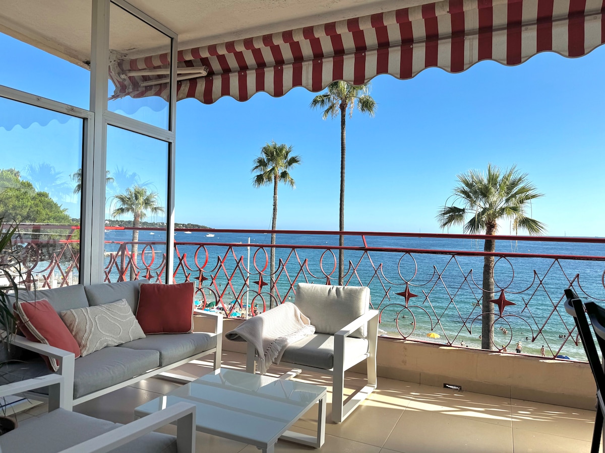 Situat ideal pe malul mării, pe cea mai frumoasă plajă din Juan-Les-Pins, apartamentul se bucură de vedere neobstrucționată la Marea Mediterană, luminozitate ideală și soare. Accesul la plajă este imediat: traversează strada. Mai multe restaurante și magazine din apropiere. Apartament pentru maximum 4 persoane. Un „apartament principal” cu dormitor și cameră mică de duș. O canapea extensibilă în living și o a doua baie. Mai multe dulapuri. Aer condiționat și plăcut.