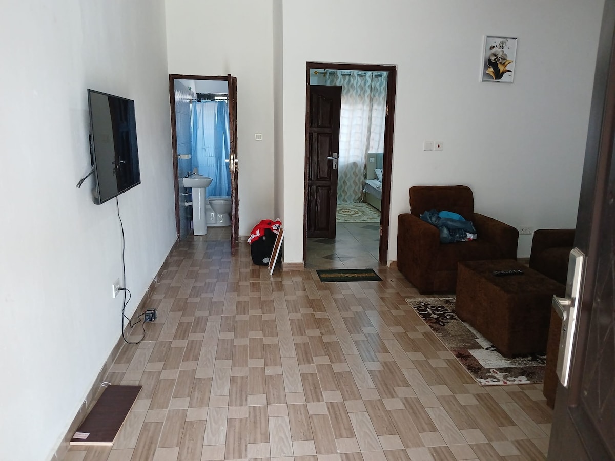 I BR apartment located at St. James Atimpoku, 3 minutes drive from Royal Senchi Hotel and Resort. Spacious and comes with a bedroom with queen-sized bed, bathroom, living room with sofas, WiFi, Smart TV both local and international Channels, kitchen with stove(not oven), fridge, cooking utensils, cutlery set. Standby generator available in times of power outage