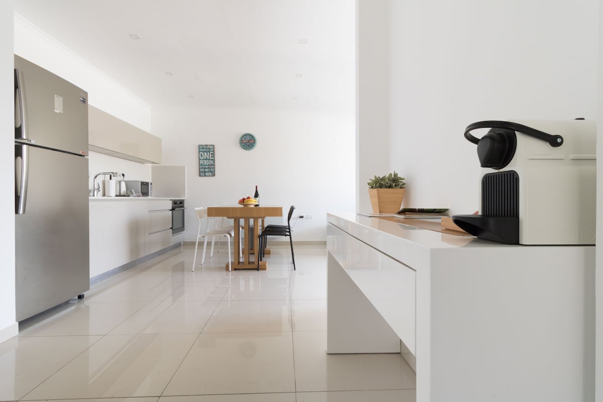 Începe ziua cu micul dejun pe balconul însorit al acestui apartament tip boutique inspirat de plajă de pe strada Shlomo HaMelech. Rafturile deschise și arta calmă de coastă creează o ambianță aerisită, în timp ce gresia verde mentă și cu model adaugă un aspect proaspăt. Te rugăm să reții că va exista un TVA de 17% adăugat la rezervarea ta, dacă legislația israeliană (cetățenii israelieni și oaspeții cu vize funcționale). Apartament de lux complet renovat și inspirat de vară - culori moi frumoase în tot spațiul, cu finisaje de ultimă generație și camere spațioase. Podelele din lemn, ferestrele luminoase, tavanele înalte și luxul îndrăzneț creează un mediu special de galerie - un muzeu rezidențial și un apartament unic pe plajă în inima orașului Tel Aviv. Spațiul are 3 dormitoare cu diferite aspecte: BR #1: (Dormitor principal) 1 pat matrimonial cu baie proprie și balcon Juliette BR #2: 2 paturi twin/pat matrimonial matrimonial (paturile pot fi atașate) BR #3: 2 paturi duble Plus... - Living spațios și confortabil - Balcon mare însorit în afara livingului - Bucătărie uimitoare cu mașină de spălat vase și toate aparatele electrocasnice, veselă, ustensile de gătit, plus ingrediente de bază și condimente -2 băi (dormitorul principal are baie proprie) - Plantatoare verzi din fiecare fereastră + irigare automată - Dotări convenabile - prize USB, spălătorie, mașină de spălat vase, uscător, fier de călcat, sistem de aer condiționat/căldură nou controlat în fiecare cameră, ventilatoare de tavan, suport de uscare pentru rufe și îmbrăcăminte de plajă, răcitor de apă, șampon și săpunuri, prim ajutor. Chiar lângă această oază, cel mai bun TLV așteaptă literalmente la ușa ta - Începe ziua în grădina celui mai bun chioșc de cafea TLV de pe Ben Gurion Blvd. Când e timpul să iei prânzul, ești la doar câțiva pași de Ibn Gavirol St. & Dizengoff St., unde vei găsi multe restaurante și cafenele atrăgătoare. Apoi, cocktailuri și gustări la câteva minute distanță... și asta e tot fără a părăsi blocul! Nu o să-ți vină să crezi cât de aproape ești de principalele atracții ale orașului. Și nu mai puțin important - trebuie doar să te îndrepți spre vest pe bulevardul Ben Gurion și în mai puțin de 10 minute te afli pe frumoasa plajă Tel Aviv! Oaspeții sunt bineveniți să se bucure de acces complet la fiecare parte a apartamentului! Dormitorul principal are baie proprie, dulap complet și un balcon privat Juliette. Cele 2 dormitoare suplimentare includ, de asemenea, dulapuri mari. Ne vom întâlni cu plăcere și te vom întâmpina la sosire, dar vei avea întotdeauna opțiunea de check-in independent folosind codul nostru de blocare. Cu fața spre curtea din spate, apartamentul rămâne extrem de liniștit toată ziua. Există multe baruri și restaurante chiar după colț, la două minute de bulevardul Ben-Gurion, la cinci minute de Ibe Gavirol și Dizengoff și la numai 10 minute de plajă. Acces facil la autobuze, taxiuri și biciclete! Te rugăm să reții că apartamentul nostru este la etajul 2 și nu există lift.