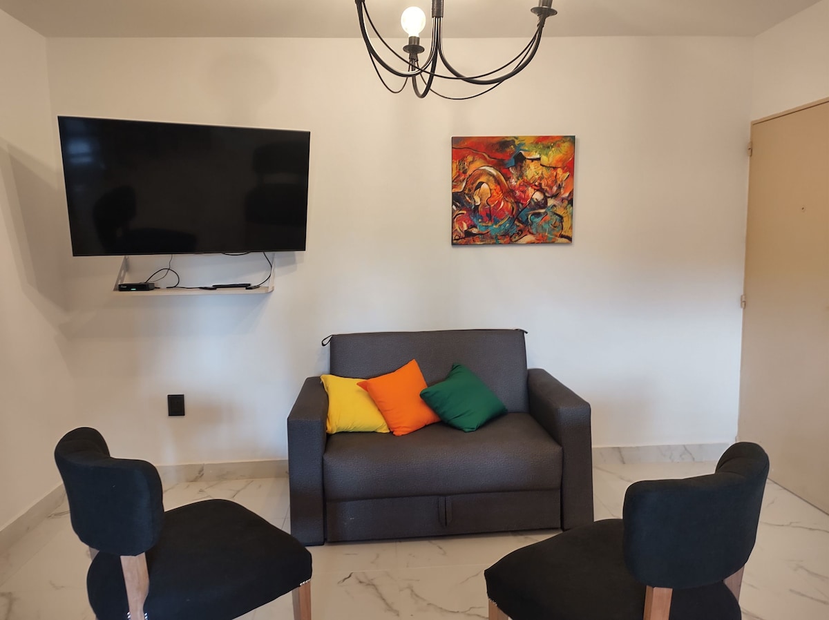 Apartament elegant complet echipat, situat într-o zonă liniștită și cel mai sigur din oraș și la câteva minute de centrul orașului, are toate serviciile pentru confortul și plăcerea ta, pentru a-ți face șederea o experiență sublimă pentru o muncă sau un turism.