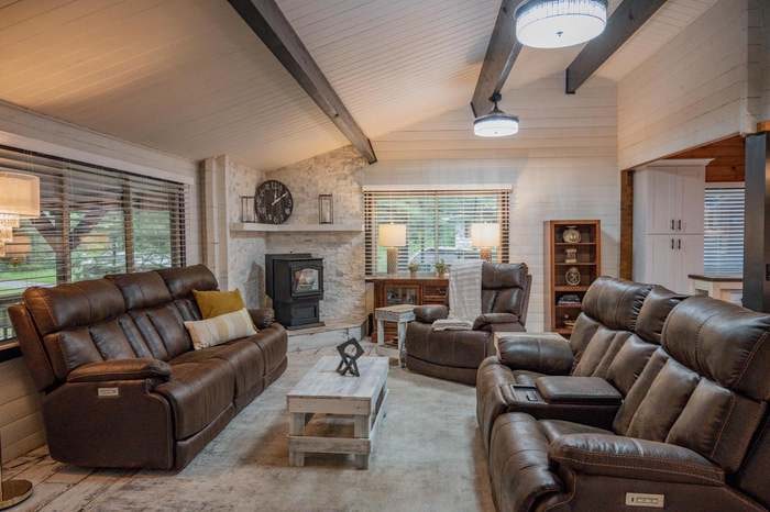 Evadează în Narrow Waters, o cabană de vacanță de lux. Situat convenabil între Castle Rock și Petenwell Lakes, relaxează-te în mijlocul pădurilor veșnic verzi încântătoare care împodobesc strâmtorile pitorești ale râului Wisconsin. După o zi în Wisconsin Dells, scufundați-vă într-una dintre cele 2 căzi cu jet, apoi adunați-vă în jurul șemineului confortabil sau al unui televizor 4K masiv de 75". Adormi pe patul matrimonial premium, înfășurat în 1.000 de cearșafuri din bumbac. Sau alege unul dintre cele 4 dormitoare Queen care se potrivesc cel mai bine stilului tău.