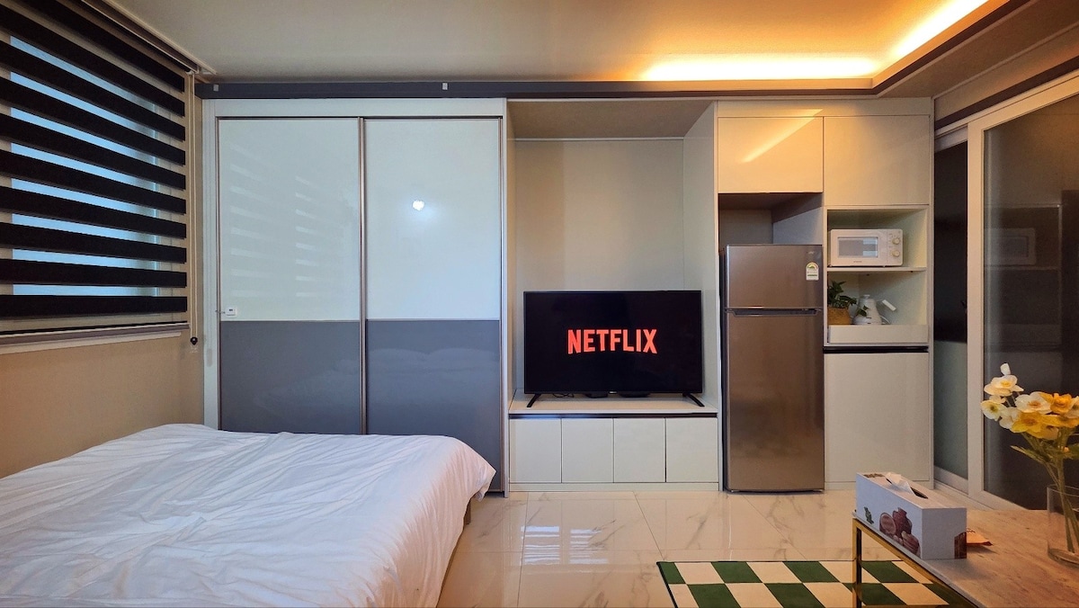 Bine ai venit la „The Middle 9th studio”. Am pregătit un spațiu astfel încât să te poți simți ca și cum ai fi în propria casă. Pentru cei care vin pentru șederi de lungă durată, călătorii de afaceri și călătorii la Daejeon, am echipat cu atenție instrumentele de confort necesare, aparatele electrocasnice și diverse necesități zilnice. ✔️ O mulțime de spațiu de locuit și un dormitor confortabil. Bucătărie ✔️ curată și convenabilă, complet echipată cu vase de bază. Wi-Fi și spațiu de lucru pentru a ✔️ te concentra pe munca ta. (Canapea de luat masa) Aparate de uz casnic convenabile, cum ar fi o mașină de spălat rufe, un uscător de rufe, un fier de călcat și o mașină de spălat vase ✔️ pentru oaspeții pe termen lung Nu este doar un loc de dormit, am creat un spațiu de locuit adevărat. Am pregătit-o cu atenție, astfel încât să nu te simți inconfortabil în timpul unei călătorii de afaceri sau al unei șederi de lungă durată. Îți mulțumim pentru atenție și utilizare. 🙏