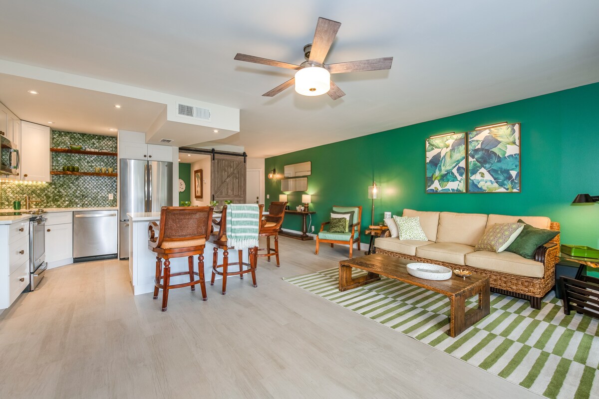High Tide Hideaway este un frumos apartament cu 2 dormitoare și 2 băi la câțiva pași de plajă și amplasat lângă Carlin Park. Cu tavane boltite, lumină amplă și o terasă privată pentru mese în aer liber, acest refugiu liniștit oferă farmec inspirat de surf și confort modern. Traseele naturale din spatele apartamentului duc la terenuri de pickleball și ocean, în timp ce locația liniștită asigură intimitate. La doar câteva minute de Jupiter Inlet, restaurante, cumpărături și multe altele, este amestecul perfect de relaxare și aventură. 🌊