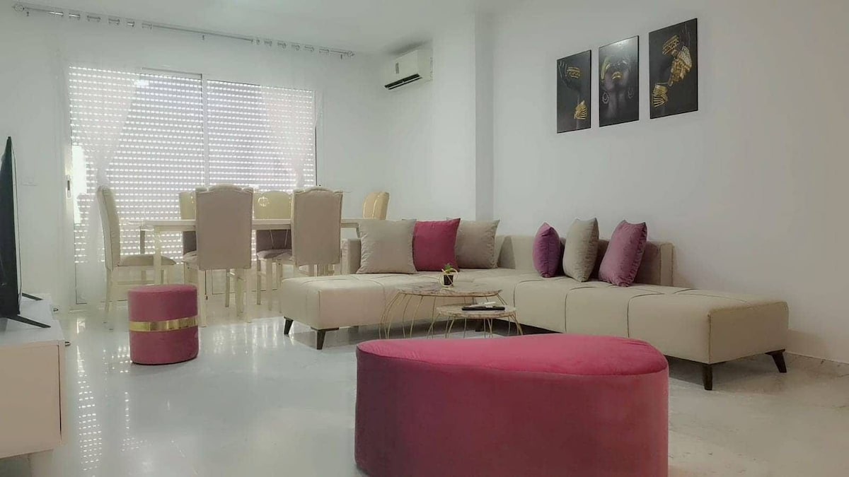 Această cazare perfect situată în centrul orașului El Mourouj 1 oferă atât confort, cât și proximitate, la 20 de minute de aeroport și la 10 minute de centrul orașului Tunis. Bucătăria este bine echipată și un living mic, bine decorat cu o canapea confortabilă. Apartamentul a fost renovat în aprilie 2024. Prețul este o ofertă introductivă excelentă.
