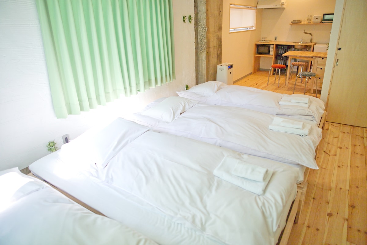 Zonă comercială/supermarket/magazin la 3 minute de mers pe jos! Mașină de spălat și bucătărie completă/Utilizare nelimitată a spațiului de coworking [MIX Dormitor]
