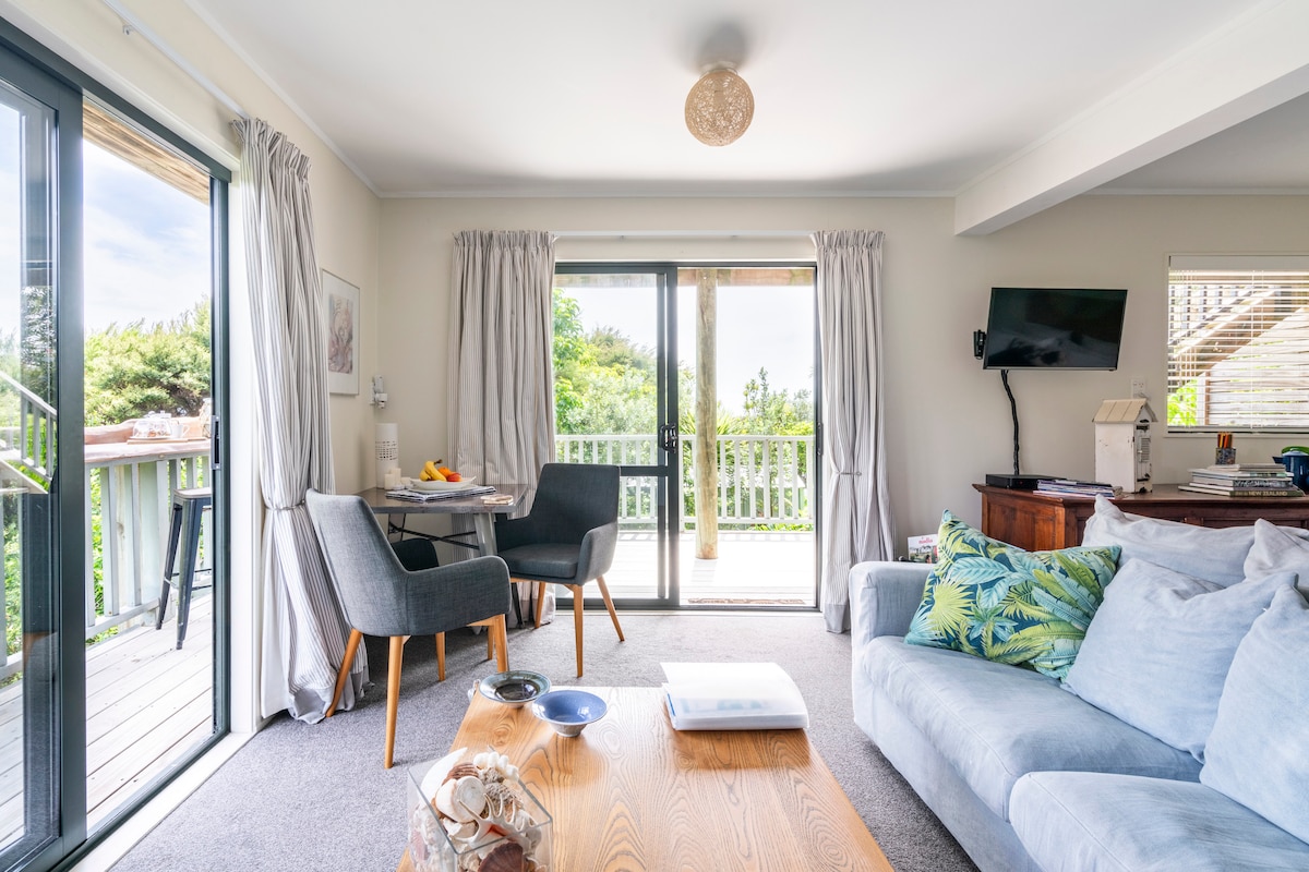 Ascultă sunetele mării și păsările din vale. Doar 45 de minute de mers cu feribotul de la Auckland până la această insulă specială. Trezește-te pe patul confortabil și experimentează frumusețea din Waiheke, unde este întotdeauna un pic mai cald! Studioul privat liniștit de sub casa mea oferă liniște cu o privire la mare. Mergi pe plaja frumoasă pentru a înota, a te plimba sau a sta la soare. Ia autobuzul sau fă o drumeție pentru a descoperi comorile acestei insule frumoase. Relaxează-te, recuperează-te și bucură-te.