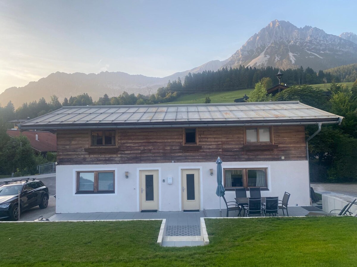 Apartament dotat cu multă dragoste și elegant. ❤️ În apartamentul nostru liniștit de 38 m² vei găsi o bucătărie complet utilată cu mașină de spălat vase, zonă de luat masa cu TV, pat dublu 160 x 200, baie cu duș, Wi-Fi, ușă mare de sticlă spre natură cu terasă🏔️ Loc de parcare gratuit în fața apartamentului.🚗 Doar 1 minut de mers pe jos până la autobuzul de schi către lumea de schi Wilder Kaiser Brixental 🚌⛷️🚠 Suntem punctul de plecare ideal pentru recreere, sport și excursii Fă o pauză 😍❤️😍