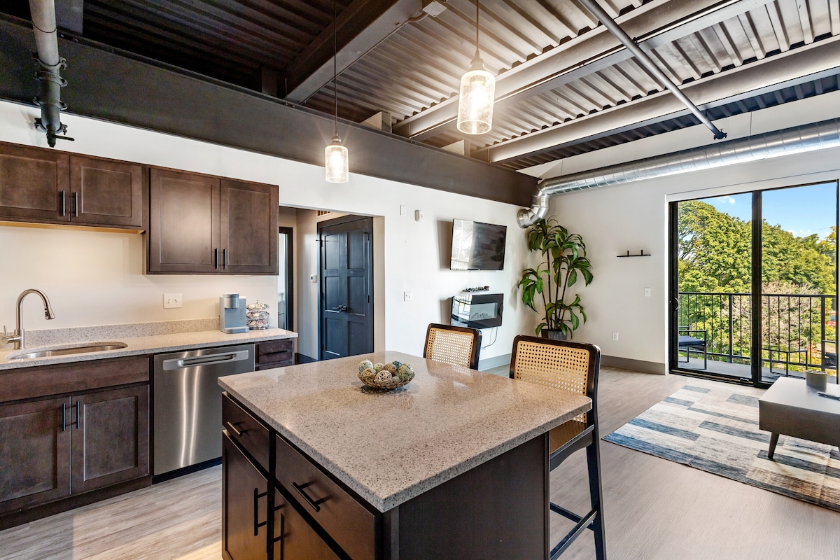 ** APARTAMENT ISTORIC NOU** RENOVAT, CU VEDERE LA CENTRUL ORAȘULUI. Acest spațiu luminos, la etajul al doilea, îmbină farmecul anilor 1920 cu dotările moderne din inima orașului Kalamazoo. Mergi pe jos până la restaurante, magazine, teatre, berării, Bronson Park și Kalamazoo Mall. Aproape de WMU Waldo Stadium, K College, Stryker WMU School of Medicine, Radisson Hotel și Bronson Hospital. Acest apartament cu design atent este ideal pentru escapade romantice, călătorii cu prietenii, părinți în vizită, evenimente în campus și persoane care călătoresc în interes de afaceri.