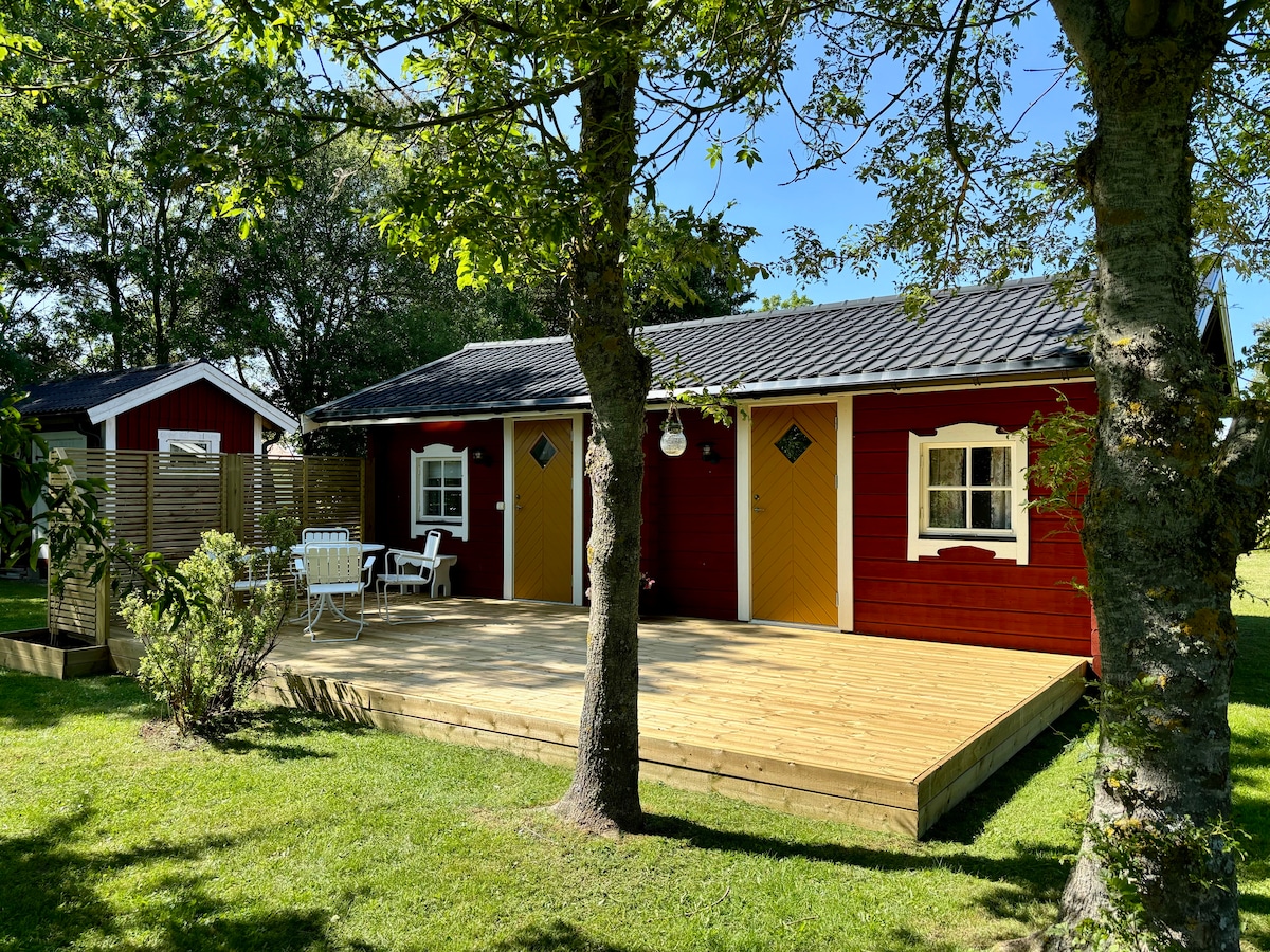 Relaxează-te cu familia în acest spațiu liniștit. Cabană de 25m2 într-o locație retrasă, pe un teren mare, lângă cabana proprietarului. Abia la 200 de metri de plaja de nisip din partea de vest a Öland. 300 de metri până la campingul Löttorps cu loc de joacă, minigolf, mini-magazin, restaurant etc. Cabana este potrivită pentru cupluri sau familii cu copii mai mici. Pat 160 cm Canapea extensibilă 140 cm Toaletă cu duș Bucătărie simplă cu frigider, aragaz și cuptor cu microunde. Grătar cu cărbune disponibil Televizor cu intrare HDMI. SVT1, SVT2, TV4 Radio Zonă de luat masa în interior Curte pavată acoperită 2 șezlonguri