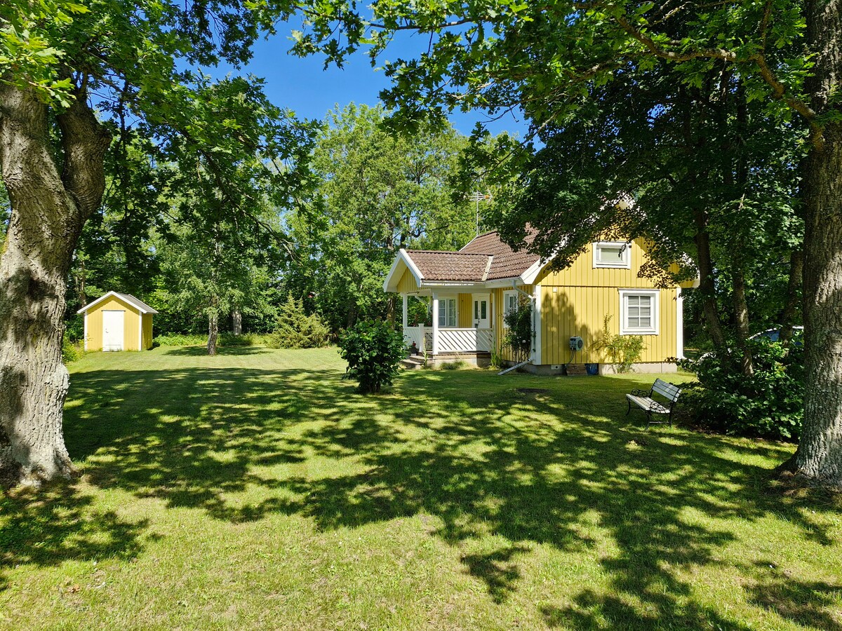 Simplifică lucrurile în acest loc retras, iubitor de natură și situat central. Deține un teren mare la 300 m de centrul orașului. O cabană de 20 mp și o cabană veche. Paturi confortabile, o canapea extensibilă pentru două persoane și un pat supraetajat. Toaletă exterioară cu spălare manuală. Duș în conformitate cu acordul într-o altă casă. Biciclete. Hamac. Hamac. Frigider. Aragaz. Cafetieră. Ventilator de masă. Radio. Apă într-o cutie. Spală vasele pentru tine gratuit. Așternuturi ȘI prosoape SEK 50 pp. Curățare 300 SEK. Pisică de exterior "de împrumutat.„ Păsări și căprioare, chiar și lilieci și bufnițe.