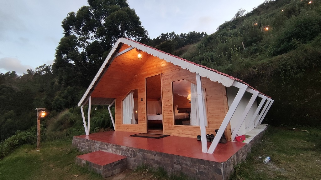 WanderNest este o cabană confortabilă A Frame, amplasată în inima naturii, situată la doar 6 kilometri de orașul principal. Am combinat designul clasic A-Frame cu o terasă privată unică la etaj, permițându-ți să te bucuri de priveliști uimitoare ale văii ale fermei terasei. Oaspeții se pot bucura de un joc de badminton sau se pot relaxa în jurul focului de tabără. Cabana este făcută din pin rusesc, care este foarte confortabil, perfect pentru un sejur relaxant cu prietenii și familia.