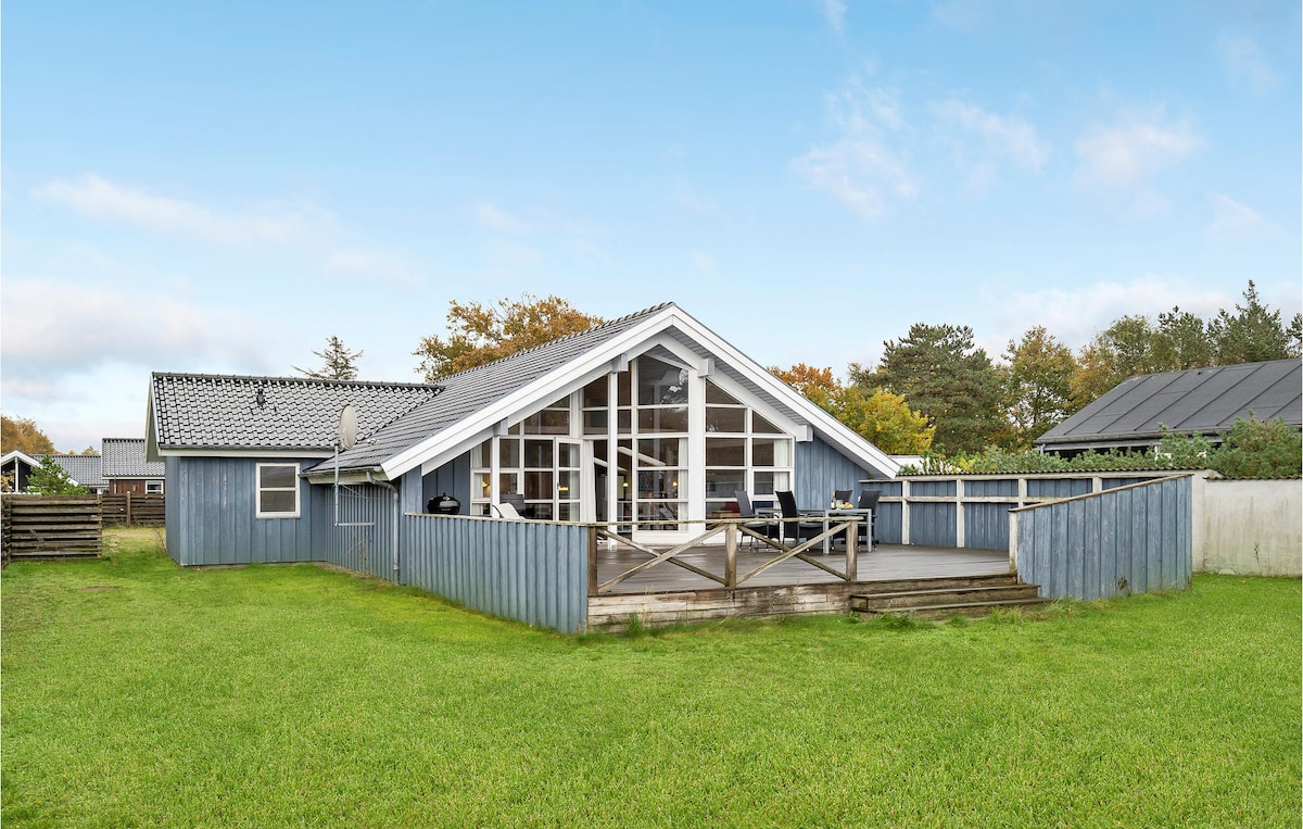 La doar 130 m de o plajă frumoasă. Casa are 55 m² și a fost renovată în 2021. Există un dormitor cu un pat dublu (180 cm). În plus, există o anexă cu un pat dublu (160 cm). Bucătăria este dotată cu cuptor, frigider și mașină de spălat vase. Există o baie cu duș, precum și o sală de mese mică cu o sobă cu lemne. Afară vei găsi o terasă din lemn de 130 mp, o cadă cu hidromasaj pe lemne pentru lunile de iarnă – și o saună privată minunată. Situat într-o zonă liniștită.