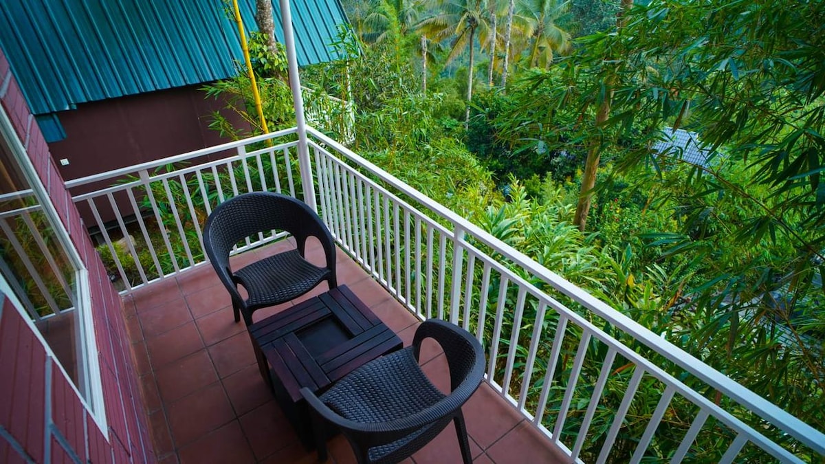 Cazează-te în camera noastră premium cu vedere uimitoare la Bhramaram View Point. Bucură-te de o zonă de relaxare în aer liber, o baie privată atașată și de toate facilitățile moderne — TV, ceainic, dulap, oglindă, scaune și nu numai. Relaxează-te în intimitate completă, înconjurat de munți liniștiți. Complexul oferă o piscină, o grădină și un restaurant care servește mâncăruri delicioase din Naadan Kerala. Perfect pentru cuplurile și familiile care caută o escapadă liniștită la munte.