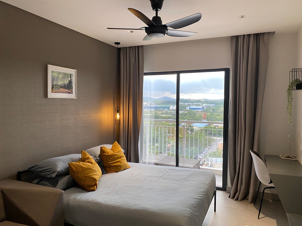 Conveniently located in west of Subang, this balcony studio offers you with the unobstructed aerial view of Subang with close access to convenient shops and restaurant and also major Expressway and MRT station. Located in 14th floor in a low density apartment, you will have the view of airplanes landing from the balcony right from your cosy bed. This studio is also well equipped and provide you with Hi speed WiFi for free as well as parking, perfect for two guests.
