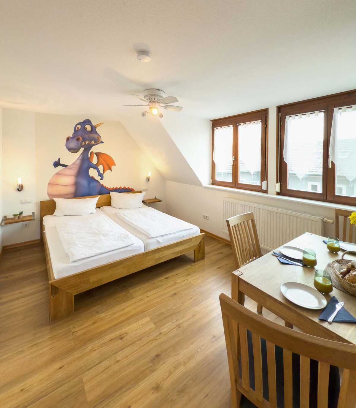 ATENȚIE: maximum 2 adulți și 2 copii cu vârsta de până la 16 ani. Inițial, a fost odată un grajd, care a fost apoi extins în 2012 și din 01.04.2019 îți oferă, de asemenea, posibilitatea de a sta într-un pat cu apă. Este imposibil ca într-o clădire veche de 200 de ani să poată fi auzite zgomote din apartamentul de mai sus și totul este fără praf. Afișează articolele interactive