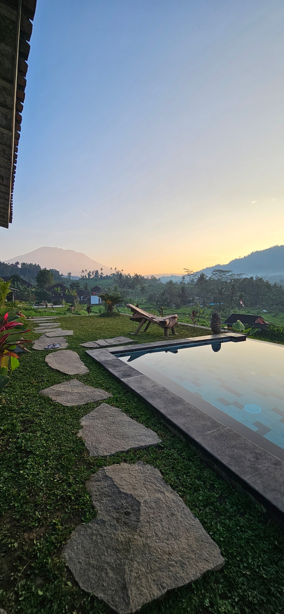Enjoy an unbeatable 180-degree sea view with breathtaking sunrise. Stargaze by the pool under fragrant frangipani trees. Stay in one of our three luxuriously furnished bungalows, thoughtfully designed for modern traveler and optimized for digital nomads. Amed is just 7 mins ride by scooter. Beautiful reef for snorkelling is 5 min walk down the hill. Note: from main road our homestay is 5 mins walk up a very steep hill - not suitable for people are physically unfit or disabled. Apologies.