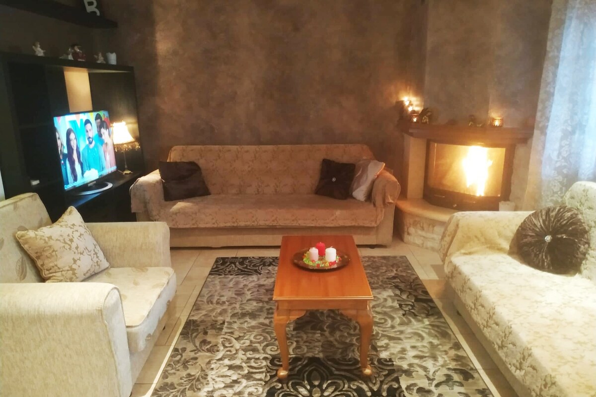 Bine ai venit în apartamentul nostru frumos, cu cea mai uluitoare priveliște asupra dealurilor Meteora!! Situat la doar 5’ de centrul orașului Kalabaka, la ultimul etaj al unei case de familie. Bucură-te de confortul care vine de la șemineul din living în timp ce privești priveliștea uimitoare! O bucătărie recent renovată, cu tot ce este necesar pentru tine. Eu și familia mea vom fi întotdeauna la dispoziția ta cu orice ai nevoie pe parcursul șederii. Te putem prelua oricând de la orice gară/stație de autobuz la cerere!