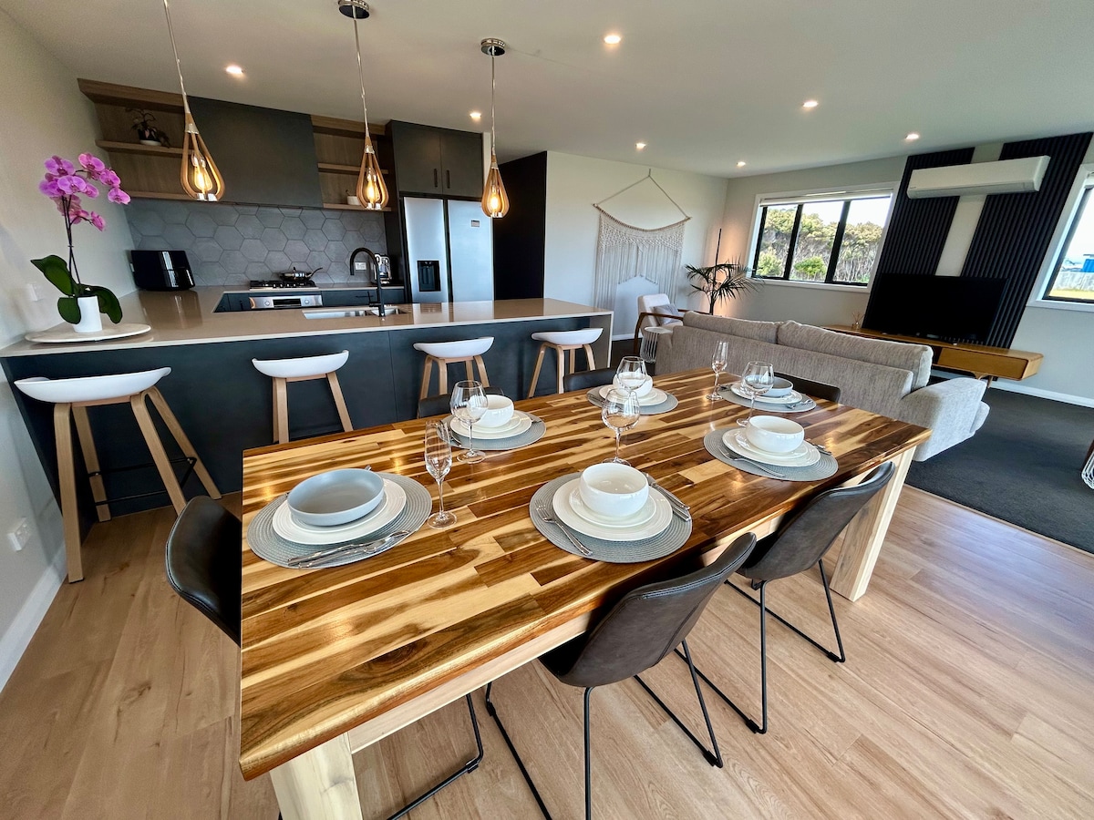 Sanctuar de coastă de top, cu priveliști impresionante asupra golfului Doubtless. Liniștit și plin de lumină, este ideal pentru cupluri sau persoane care călătoresc singure care caută romantism, odihnă sau retragere. Mergi pe jos până la o plajă liniștită, cu acces direct, explorează rezervațiile naturale din apropiere sau fă o excursie de o zi la Cape Reinga. Trezește-te cu sunetul valurilor și relaxează-te în timp ce soarele apune peste mare. O bază perfectă pentru liniște, reconectare și aventură în Northland. Descoperă Cape Reinga, Maitai Bay, Taupo Bay și Rangiputa.