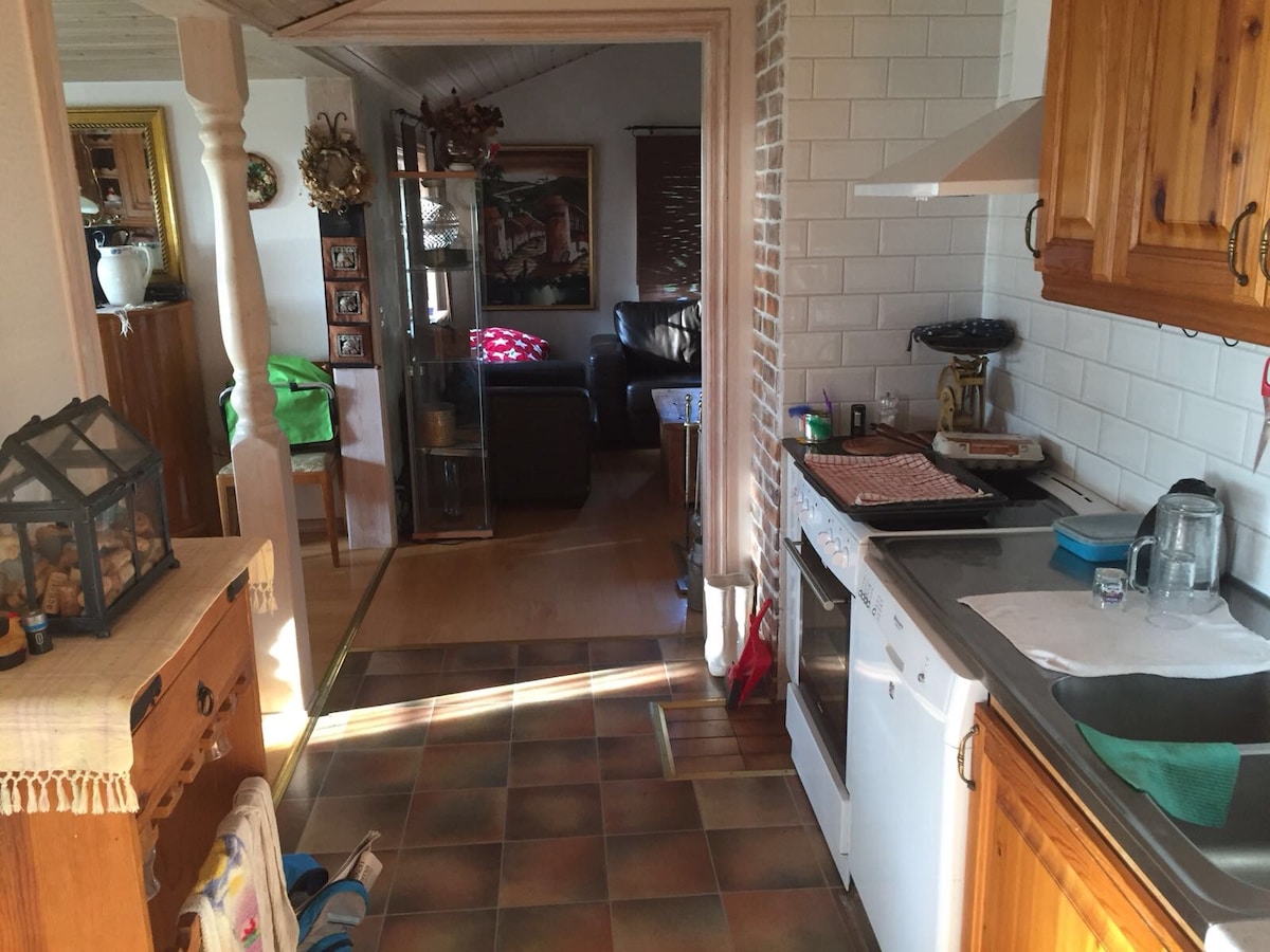 Reconectează-te cu natura în această escapadă de neuitat. O casă minunată de 170 m2 la țară, la o distanță de mers pe jos de 5 minute până la un lac cu o plajă pentru iubitorii de soare, pentru ca copiii să facă o baie la plută sau să-ți încerce norocul prinzând un pește! Relaxează-te în grădina din jurul casei și bucură-te de liniște. Trei dormitoare și un WC la etaj și o canapea extensibilă la parter. Lenjerie de pat, prosoape incluse. Curățare la cerere. Locație excelentă dacă vrei să explorezi Blekinge, grădina Suediei.