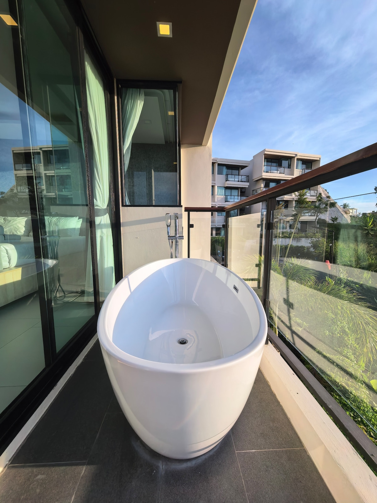 欢迎来到 Utopia Karon 公寓——您的普吉岛度假理想之所!房源地理位置优越,距离卡伦海滩(Karon Beach)仅数分钟车程,让您轻松享受阳光、海浪与沙滩。 这间公寓设计现代、私密舒适,配有阳台浴缸,可在傍晚欣赏壮丽的山景与日落,为旅途增添一份宁静与浪漫。 房间亮点 •舒适卧室:配备大床与高品质床品 •阳台浴缸:边泡澡边欣赏山景 •私密阳台:感受自然与微风 •小厨房:可简单烹饪、配备基础厨具 •智能电视 & Wi-Fi:休闲娱乐轻松方便 •冷气空调:无论白天黑夜都保持舒适 公寓设施 •无边泳池 •健身房 •免费停车 •24小时安保与门禁系统 地理位置 •步行或短程车程即可到卡伦海滩(Karon Beach) •10分钟到卡塔海滩(Kata Beach) •15分钟到芭东海滩(Patong Beach) •50分钟到普吉国际机场 适合人群 这间公寓非常适合情侣、独行旅客、度假游客或想放松身心的客人。无论是泡在阳台浴缸中欣赏夕阳,还是在泳池边小憩,这里都是您享受普吉岛慢生活的理想选择。