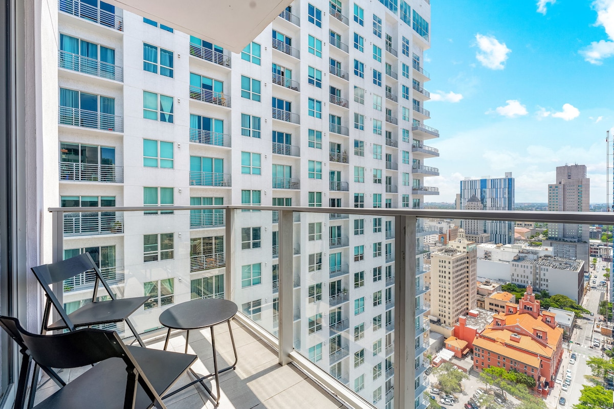 - Bucură-te de un apartament elegant în centrul orașului, situat la etajul 19, cu priveliști uimitoare asupra orașului. - Acest studio elegant are un pat queen-size, o zonă de living și o bucătărie complet utilată. - Bucurați-vă de acces ușor la cele mai importante atracții, inclusiv Kaseya Center, Muzeul de Artă Perez și Muzeul de Știință Frost. - Relaxează-te pe terasa privată, bucurându-te în același timp de peisajul urban vibrant al orașului Miami și de apusurile de soare. - Rezervă-ți șederea pentru un amestec perfect de confort, comoditate și explorare în inima orașului Miami.