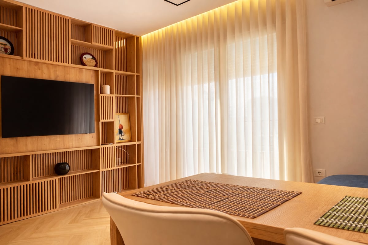 Apartament privat elegant cu intrare privată într-un turn nou deschis, situat în inima Districtului Istoric și de Afaceri din Tirana. Un spațiu confortabil, autonom, cu chicinetă și cameră de duș modernă. Vedere excelentă de la balcon, perfectă pentru călătorii solo și cupluri care caută un loc confortabil. O bază ideală de la care să te bucuri de tot ce Tirana are de oferit.
