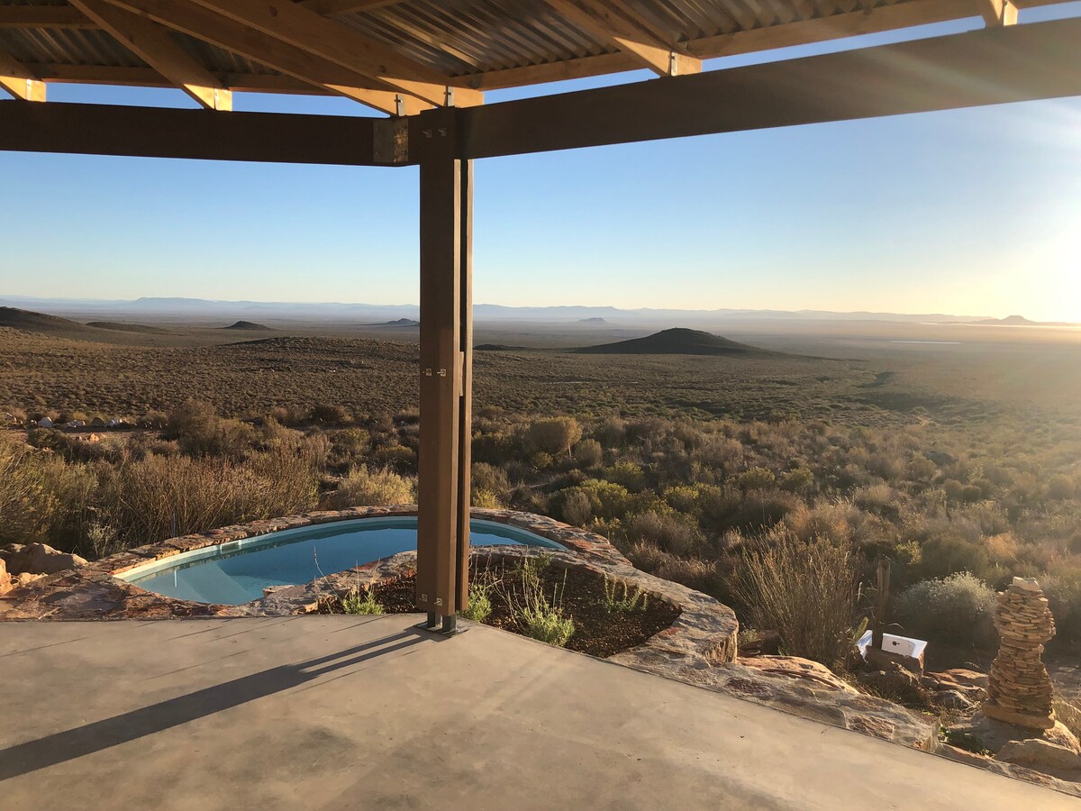 Situated on the slopes of the Swartruggens range, Serenity boasts magnificent panoramic views across the Ceres Karoo. It is perfect for those looking for privacy and tranquility. It has a large private pool as well as a wood-fired hot pool, and a long patio with chairs and daybeds. The interior of Serenity has a large open plan living area with a closed fireplace for those chilly winter evenings. An ideal getaway for bird-watching, hiking, mountain-biking, stargazing and total peace and quiet.