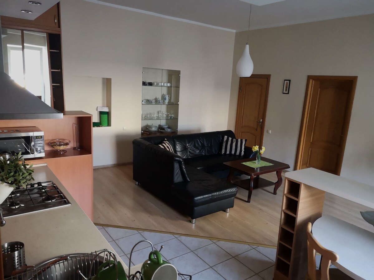 Apartament confortabil cu două camere în centrul orașului Kaunas. Apartamentul este la primul etaj și este echipat în stil actualizat. Aici veți găsi un living de lux cu canapea dublă, TV, complet bucătărie echipată, un dormitor cu pat dublu king-size, o baie cu duș, prosoape și mașină de spălat rufe. În apropiere puteți găsi cafenele, restaurante, teatre. Este foarte convenabil să ajungi de la gară sau de la aeroport folosind transport în comun sau cu taxiul. Parcare: în curtea interioară.