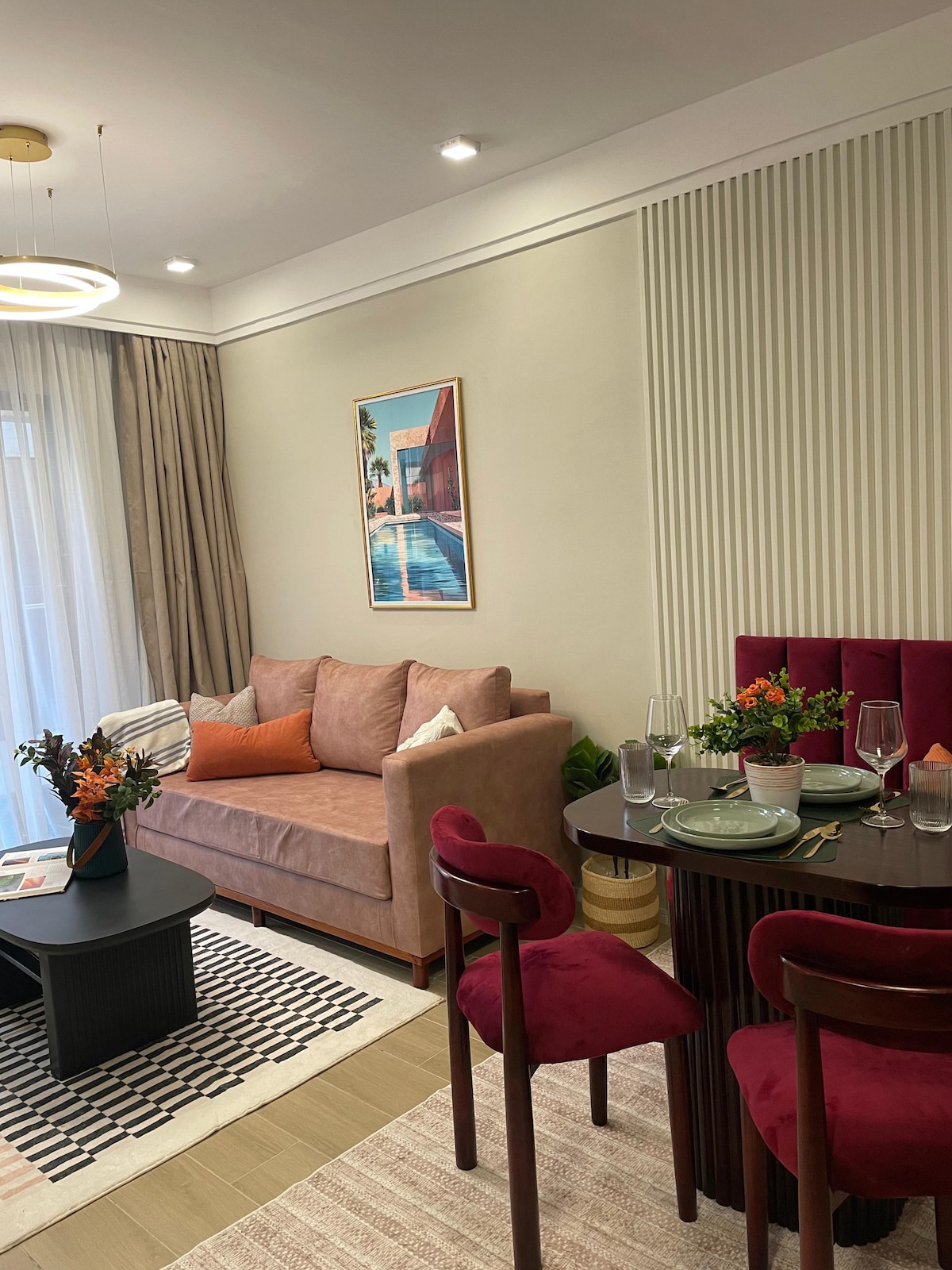 Răsfață-te cu lux urban în studioul nostru situat central, cu un pat matrimonial generos. Situată în cartierul liniștit și sigur Lavington, la doar 8 minute de mers pe jos de vibrantul Junction Mall, clădirea noastră oferă o gamă largă de facilități, inclusiv o piscină răcoritoare, o sală de gimnastică complet echipată, o groapă de foc fermecătoare și o zonă de grătar – toate într-o curte frumos amenajată. În plus, bucură-te de divertisment pe impresionantul nostru televizor de 70", cu un abonament Netflix gratuit.