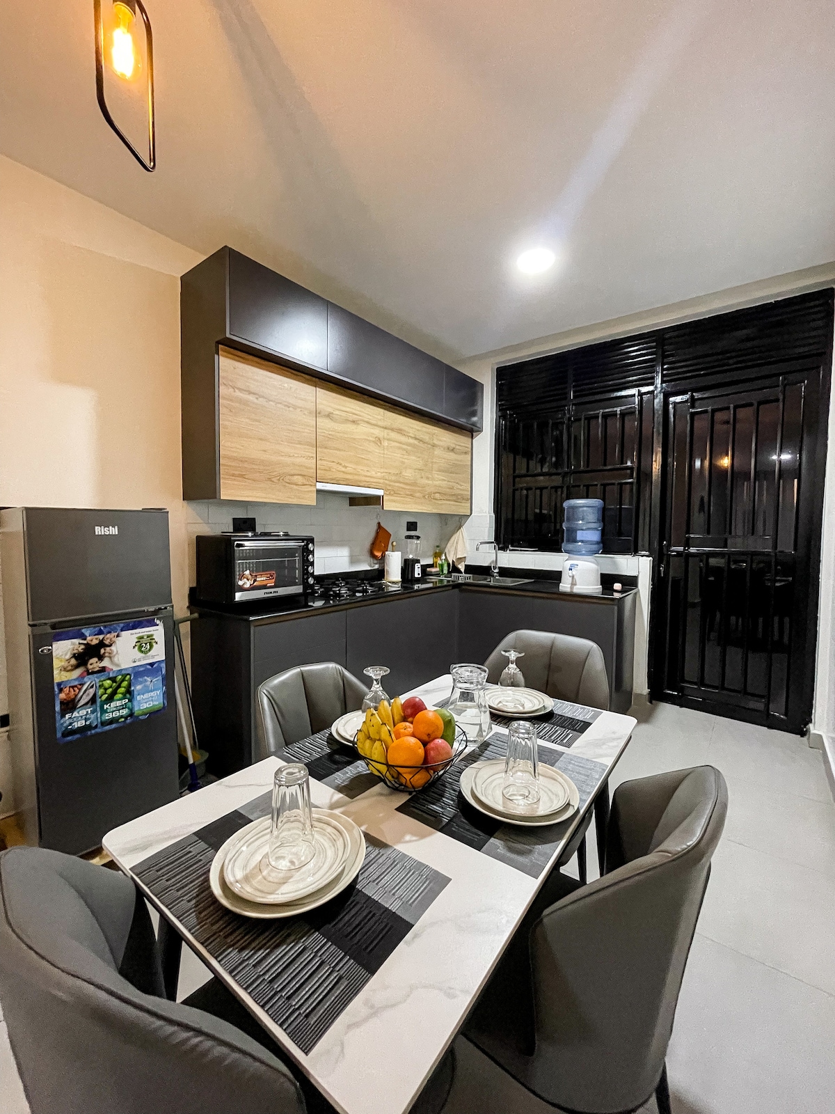 Bine ai venit la apartamentul Royal Ridge Descoperă o combinație de confort modern și farmec regal la Royal Ridge Apartment, situat ideal în Nyarutarama . Indiferent dacă vizitezi în interes de afaceri sau de agrement, acest apartament oferă un refugiu sigur, elegant și relaxant la doar câteva minute de punctele forte ale orașului. Bucură-te de o zonă de living confortabilă,confortabilă și de o bucătărie complet utilată, care te face să te simți ca acasă. Ieși afară și ești aproape de restaurante, supermarketuri, cu Centrul de Convenții Kigali la numai 2 km distanță.