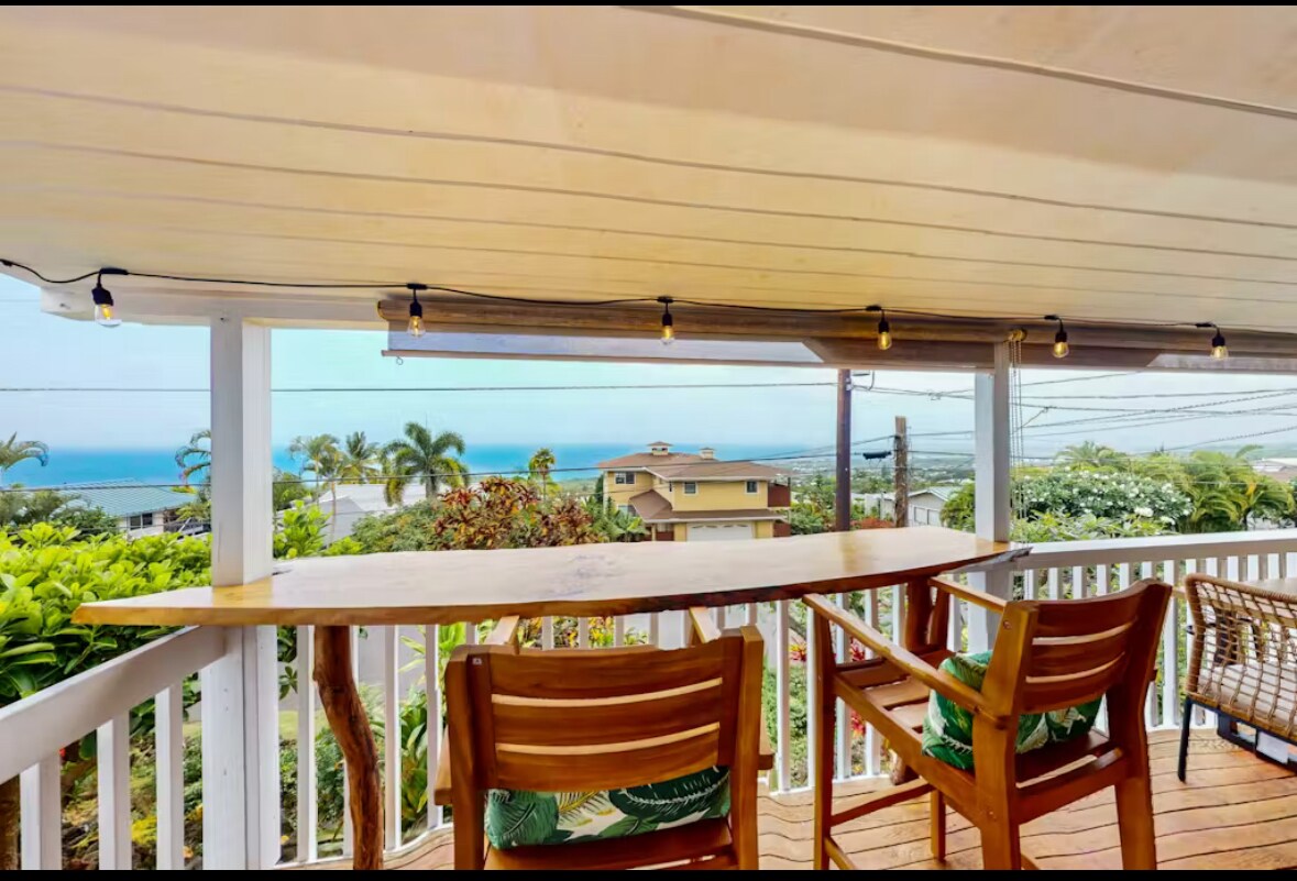 True ALOHA with one of the best ocean views in Kona!💎 Comfortable, sun-kissed and welcoming. Professionally cleaned and maintained. Perfect for unwinding after a day of island sight-seeing. The charming, stylish, island-vibe space has private entrance and is located on the ground floor of a large two-story home. Free parking. You will experience all the comforts of home including an ohana kitchen, living area, bbq, and lovely, large outdoor lanai. Our goal is to give every guest a 5-star stay!