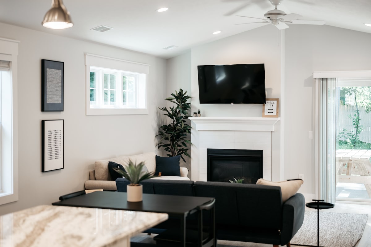 Cadă cu hidromasaj? Plajă? Sau lac? Aici..tu alegi! ☞ Curte pavată cu cadă cu hidromasaj + masă de picnic Curte ☞ complet împrejmuită + groapă de foc ☞ King cu baie proprie ☞ 50” Smart TV cu Netflix ☞ Bucătărie complet utilată + aprovizionată Acces la☞ plajă + lac (1 minut) ⛱ ☞ Șemineu interior cu gaz Aer condiționat ☞ central + încălzire Mașină ☞ de spălat + uscător automat de rufe la proprietate ☞ Parcare → 4 mașini 1 minut → Traverse City State Park Beach ⛱ 8 minute → DT Traverse City 22:00 - 08:00 ore de liniște Autorizație nr. 013680