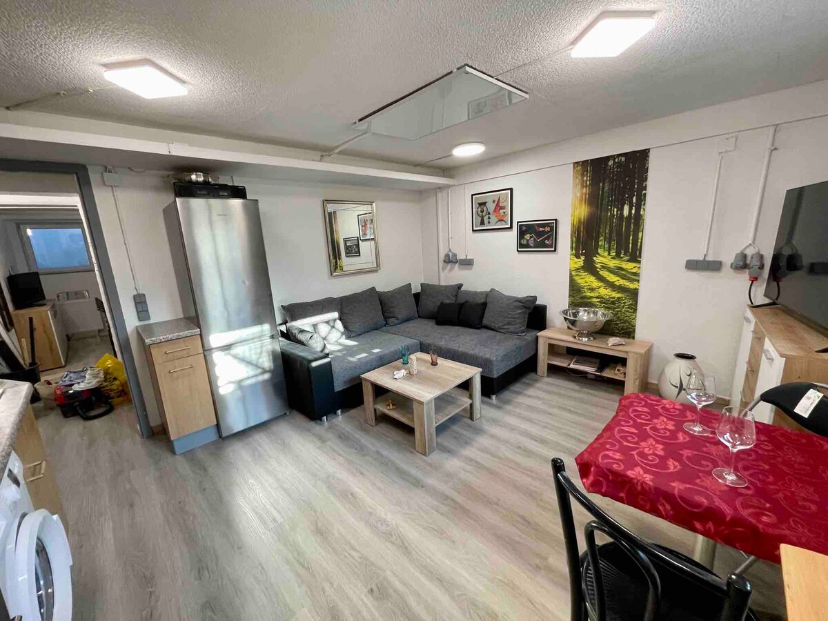 Ich vermiete eine gemütlich möblierte Einliegerwohnung (ca. 50 qm) in einem ruhigen Wohngebiet – mit separatem Eingang und eigenem Parkplatz. Die Küche ist komplett ausgestattet (u.a. Mikrowelle, Spülmaschine, Kaffeemaschine), das Bad bietet Dusche, Föhn, Waschmaschine und Trockner. Im Außenbereich warten ein Tisch, 4 Stühle und ein Grill auf schöne Stunden – auch wenn noch nicht alles ganz fertig ist. TV (Astra) und WLAN sind inklusive. Ideal für entspanntes Wohnen mit Komfort.