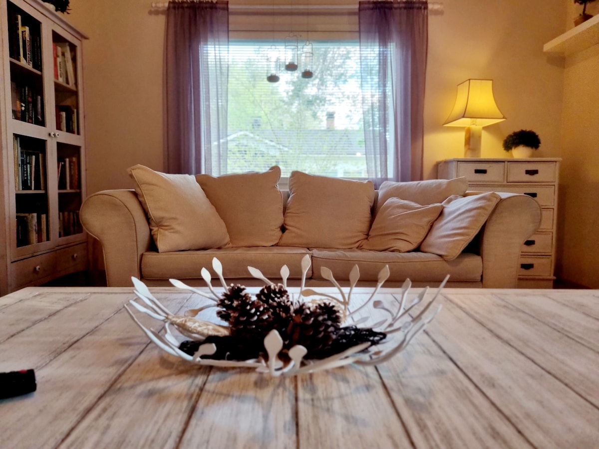Relaxează-te într-o casă de vacanță fermecătoare din anii 1960, unde stilul nostalgic întâlnește confortul modern. Casa cu aer condiționat are camere spațioase, o bucătărie bine echipată și Wi-Fi rapid. Perfect pentru familii, persoane care călătoresc în interes de afaceri, pasionați de natură și exploratori ai orașului. Bucură-te de peisajul rural liniștit, de priveliștile de pe litoral și de traseele în aer liber, în timp ce serviciile orașului Oulu se află la doar o scurtă plimbare cu mașina. Seara, relaxează-te în căldura blândă a saunei tradiționale cu lemne și bucură-te de o atmosferă relaxată și ușoară.