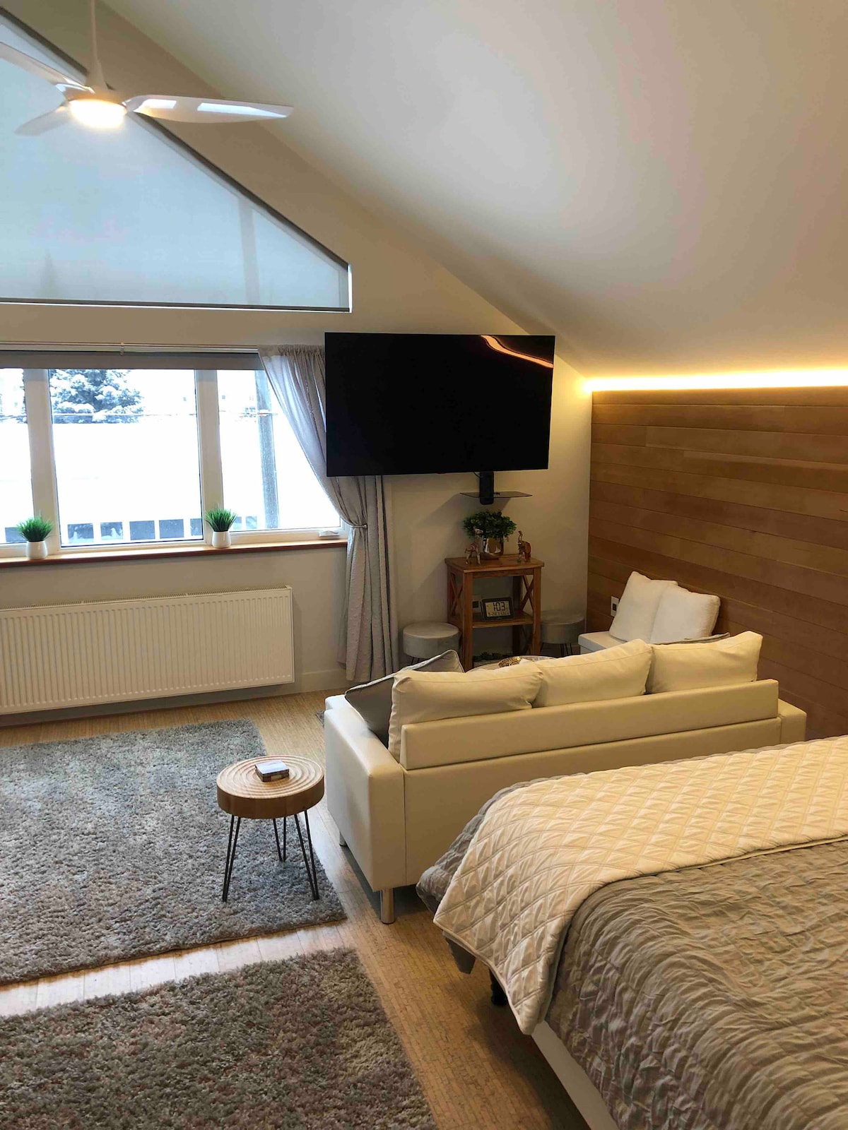 Apartamentul nostru Loft este separat și liniștit - exact ceea ce îți vei dori după o zi aglomerată! Pat queen-size pentru două persoane, are, de asemenea, două paturi confortabile Nova Form, pregătite cu lenjerie de pat, fără costuri suplimentare. Un pătuț de joacă este disponibil pentru copiii mici. Stai la căldură cu încălzirea prin plinte. Chicinetă dotată cu cuptor cu microunde, Kuerig, frigider și fierbător de apă. Sunt puse la dispoziție lapte praf, K-cups și ceai Oferim prosoape de pluș oaspeților. Există șampon și gel de duș în dozatoarele de duș.