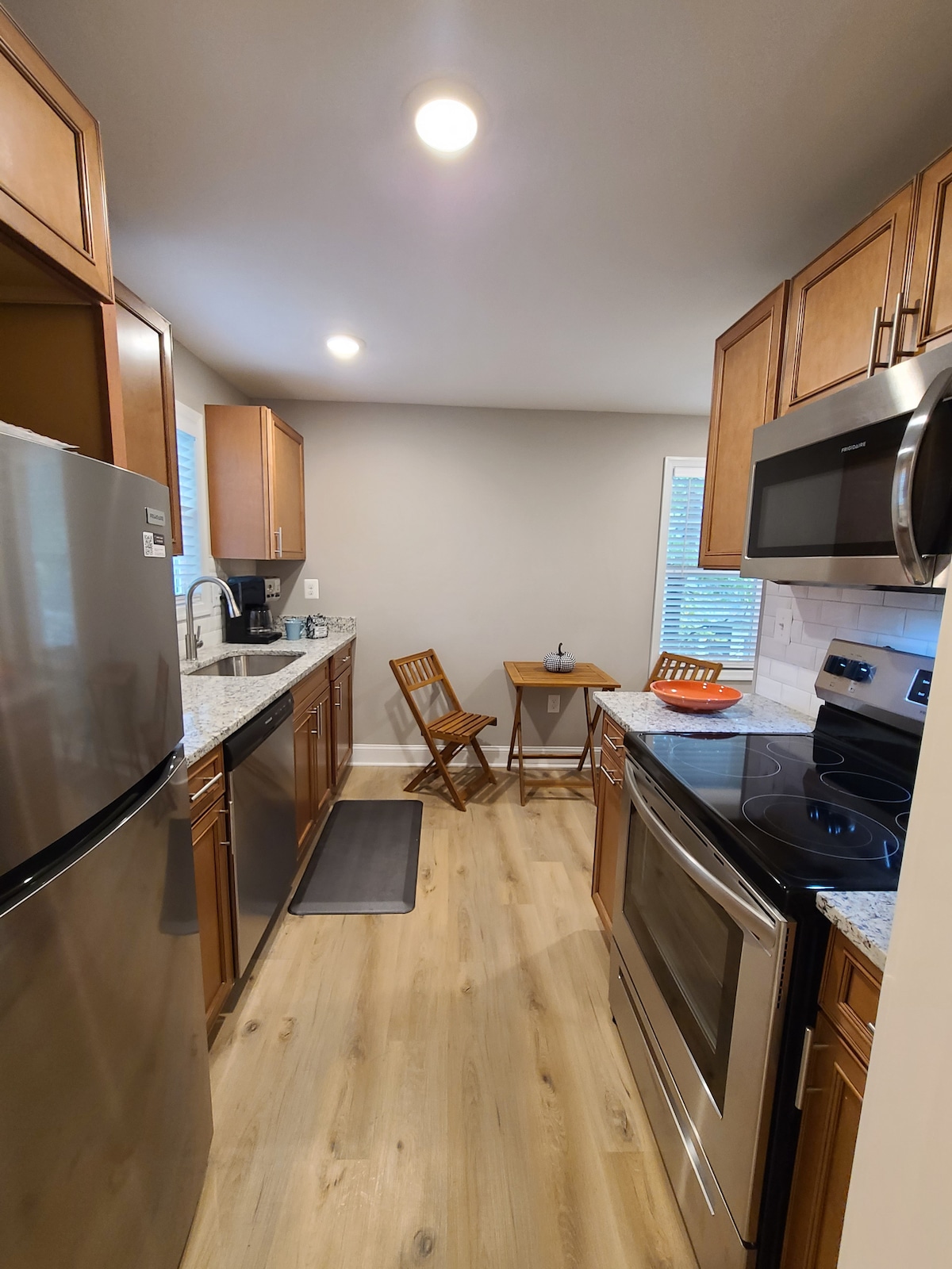 Bine ai venit! Suntem ascunși pe o stradă rezidențială împădurită, la aproximativ 7 minute de mers cu mașina de restaurante, cafenele și tot ce are de oferit Annapolis. 15 m de coastă, 30 m de Baltimore și 35 m de DC. Tl;dr: acesta este un apartament privat de oaspeți la parter cu 3 paturi, 2 dormitoare, 1 birou (birou opțional în picioare), 1 bucătărie cu cuptor, mașină de spălat vase + Nespresso/turnare peste, 2 televizoare, spălătorie cu mașină de spălat/uscător, Wi-Fi rapid, piscină, patio și vedere la pădure. Locuim la ultimul etaj.