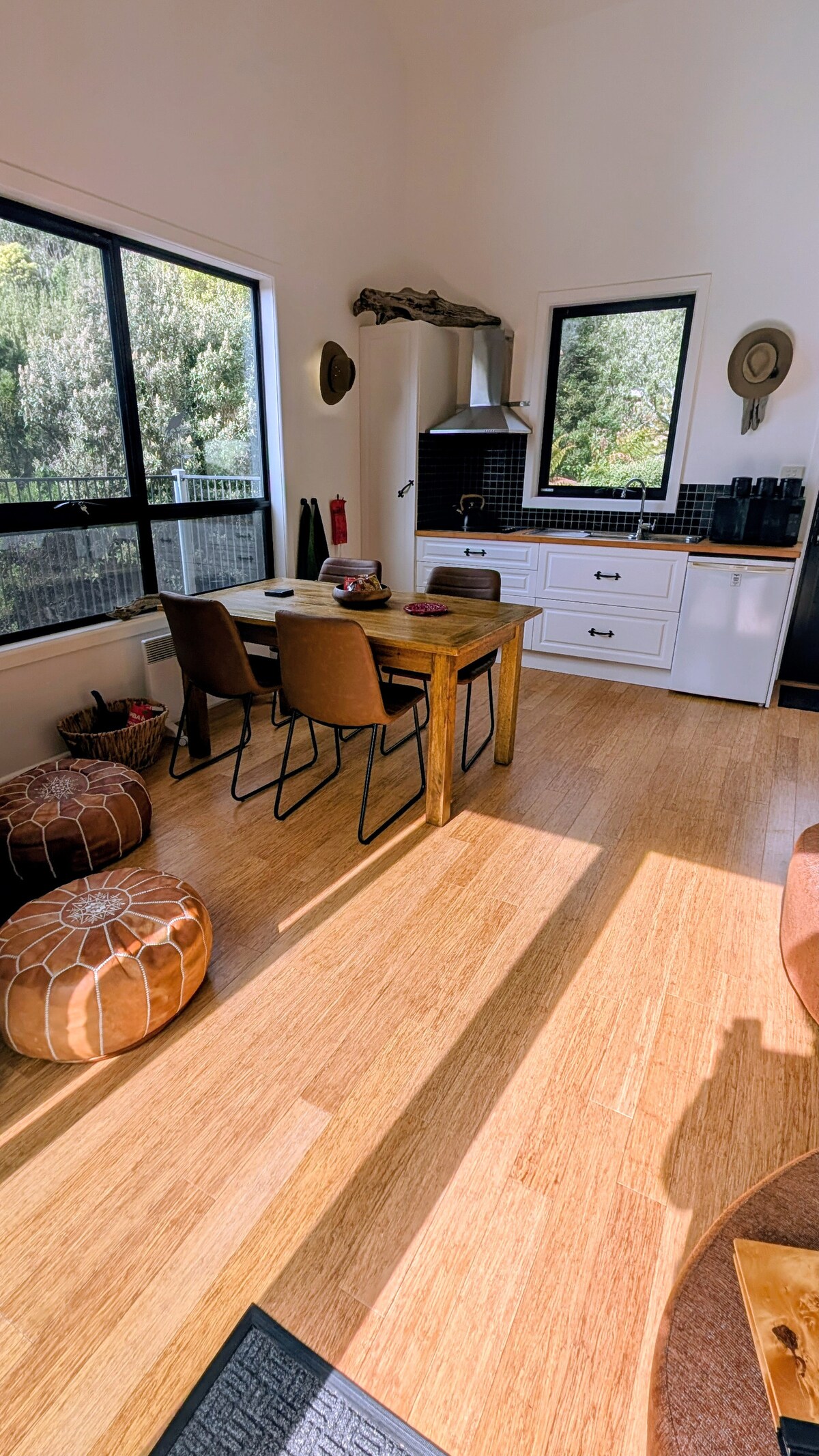 Dreamy & Remote. Locuință mică în stil loft, cu vedere. Priveliștea scaunului din față asupra zonelor exterioare ale zonei de conservare Black Buff. O sălbăticie neatinsă, într-un mediu în continuă schimbare. Propria ta escapadă privată; o căsuță într-o lume mai mare decât noi. Dotată cu bucătărie, baie privată, zonă de living spațioasă și scaun pentru fereastră, este un loc unde te poți ascunde și privi pe măsură ce natura se mișcă sau, leagănă-te pe punte sau pe groapa de foc și pune o mână de ajutor.
