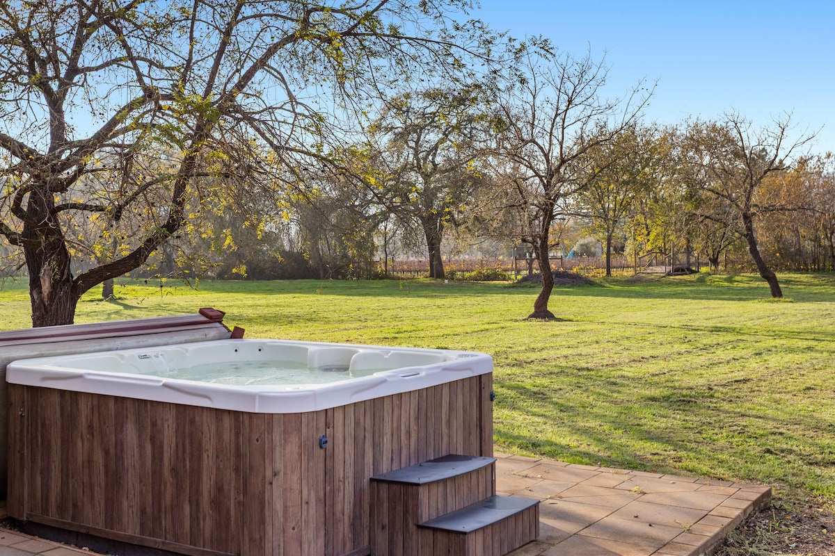 Creekside Sonoma Cottage • Curte pavată, cadă cu hidromasaj și grătar