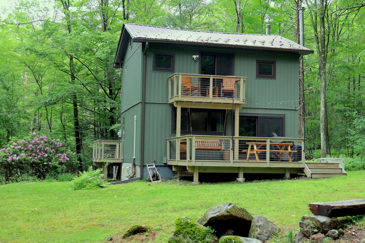 Cazează-te în casa noastră confortabilă și privată cu 2 paturi/2 băi, cu verandă acoperită, cadă cu hidromasaj, vatră, duș în aer liber și cabină de birou suplimentară (perfectă pentru muncă, exerciții fizice sau meditație), toate înconjurate de păduri frumos împădurite. Situat central în Kerhonkson, la doar 15 minute de piețele agricole locale, restaurante și berării populare de la fermă la masă și drumeții și alte activități în aer liber.