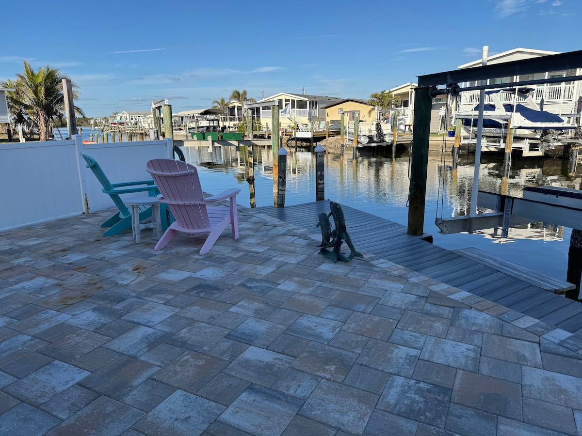 Frumos 3 dormitoare, 3 băi acasă pe un canal cu un doc! Adu cu tine barca sau cu jet ski-ul! Bucură-te de o ședere relaxantă urmărind delfinii și lamantinul chiar lângă doc. Această locuință complet actualizată are tot ce îți trebuie pentru o vacanță fantastică. Locație specială! 5 minute până la plaja Ft Meyers. Bucură-te de stațiune chiar în propria curte. Piscină nouă cu o cadă cu hidromasaj și un raft pentru soare. Bucură-te de apusuri de soare frumoase de pe terasa imensă. Cărucior până la plajă la intrarea în cartier sau mergi pe jos în câteva minute.