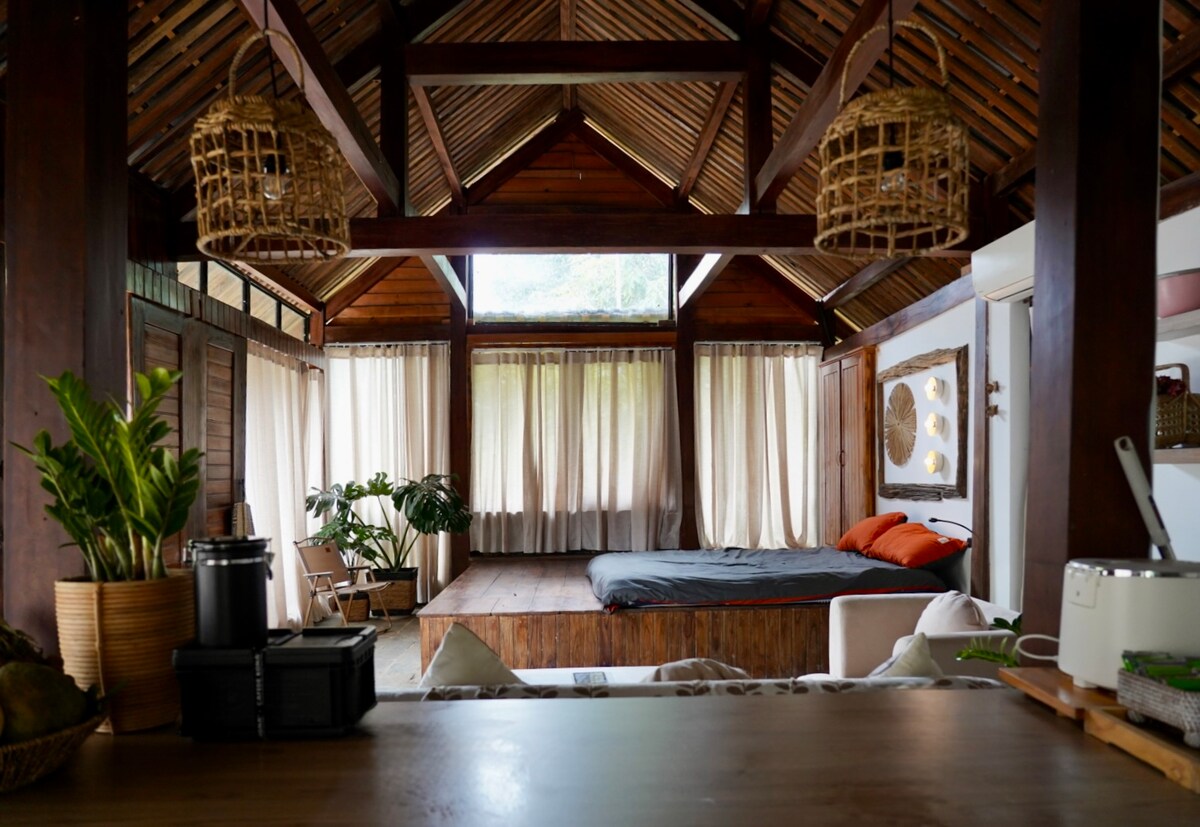 Casa se află la 7 km de centrul orașului, potrivită pentru familii, cupluri cu transport, deoarece este destul de dificil să te deplasezi cu transportul public. Experiența este cu adevărat locală și potrivită pentru șederi de lungă durată. Nu vor exista utilități, cum ar fi menaj regulat sau încuietori inteligente. Livada este utilizabilă, dar trebuie curățată și udată zilnic de unul singur. Casa este aproape de șinele de cale ferată și un pic dificil de găsit calea, așa că ia în considerare dacă nu tolerezi zgomotul și vrei doar să stai în locuri turistice cu multe utilități.